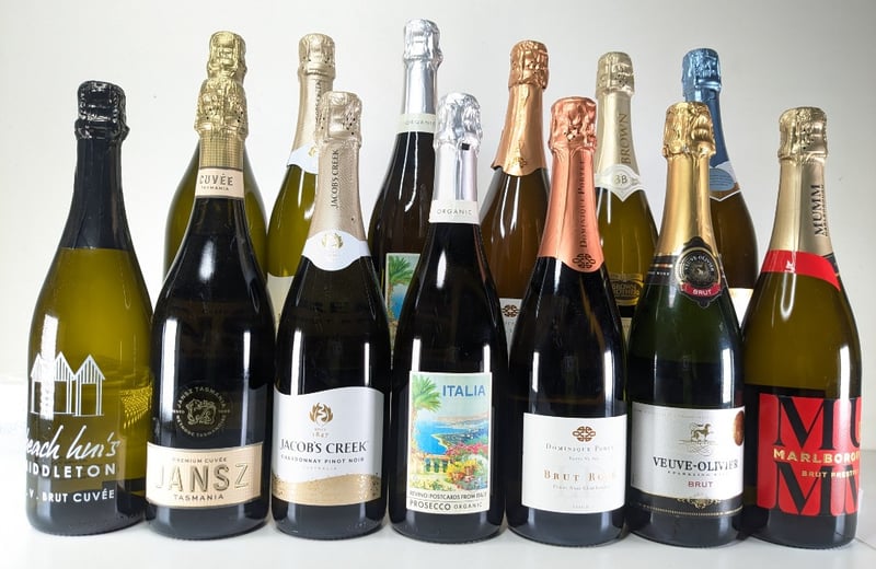 Assorted Sparkling Wine, Includes: Dominique Portet, Revino: Postcards from Italy, Veuve-Olivier and more, Quantity: 13 bottles,