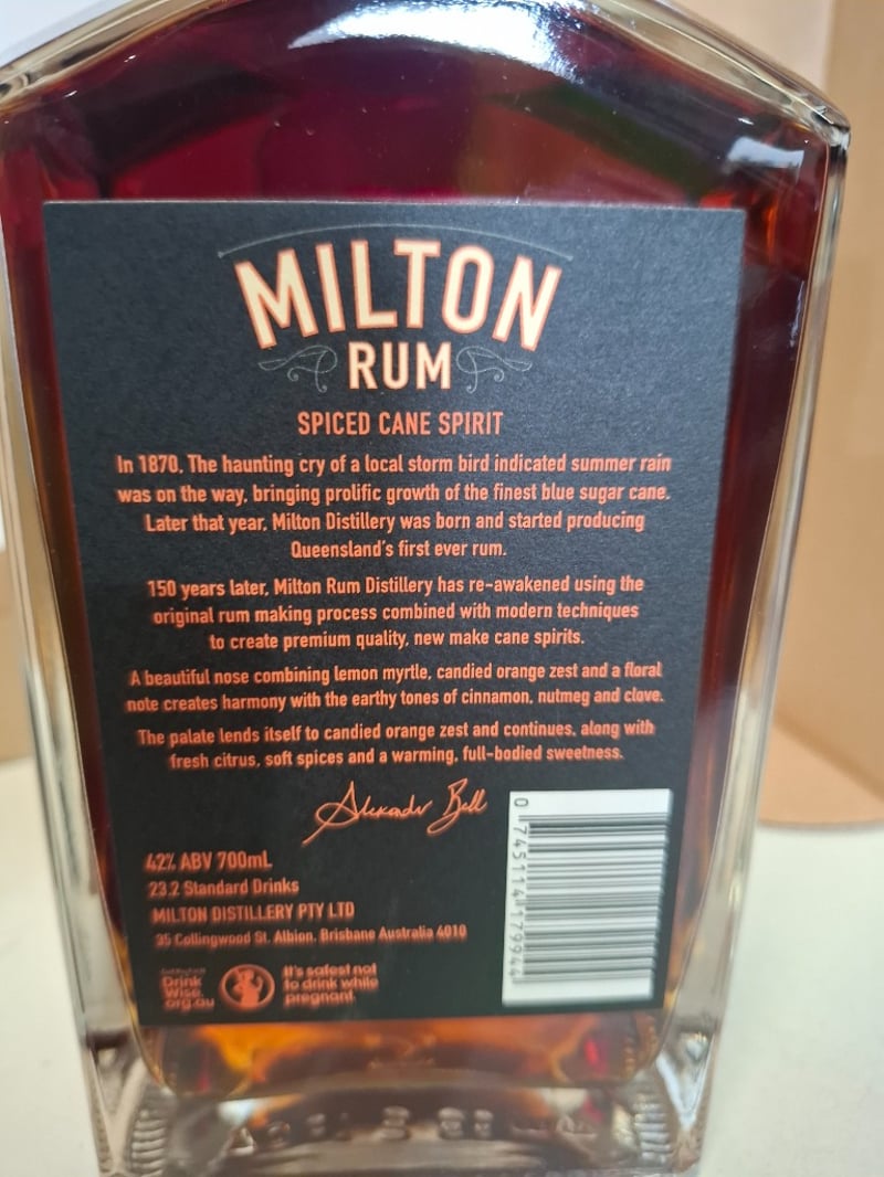 Milton Rum Spiced cane Spirit ,42% Alc/vol, 700ml