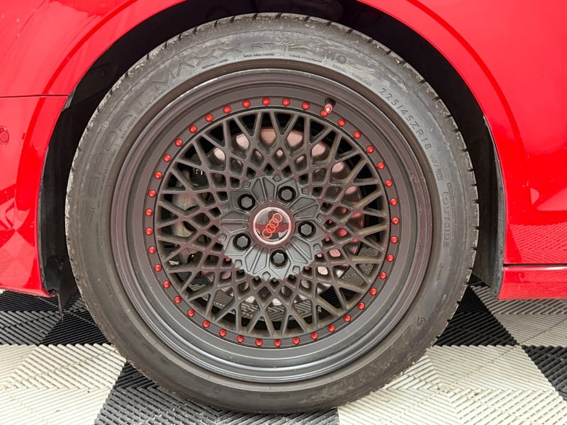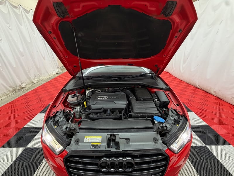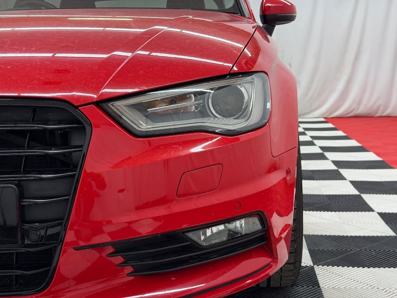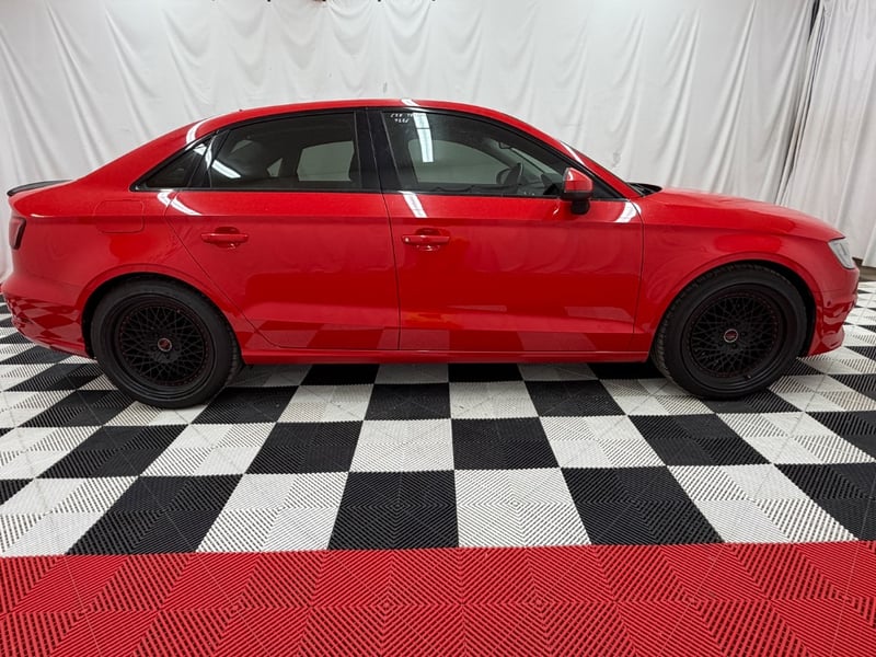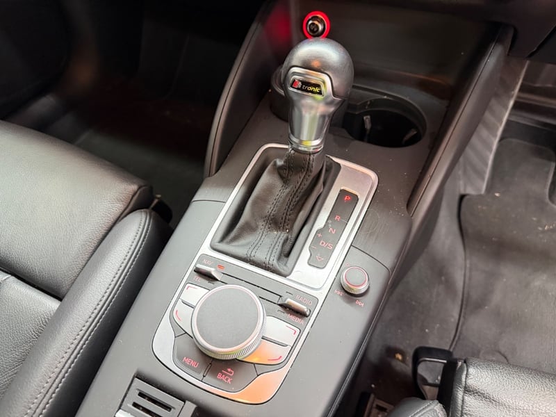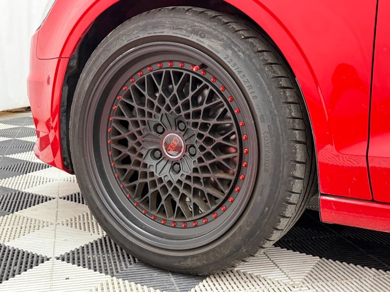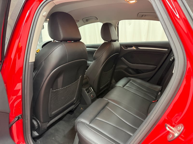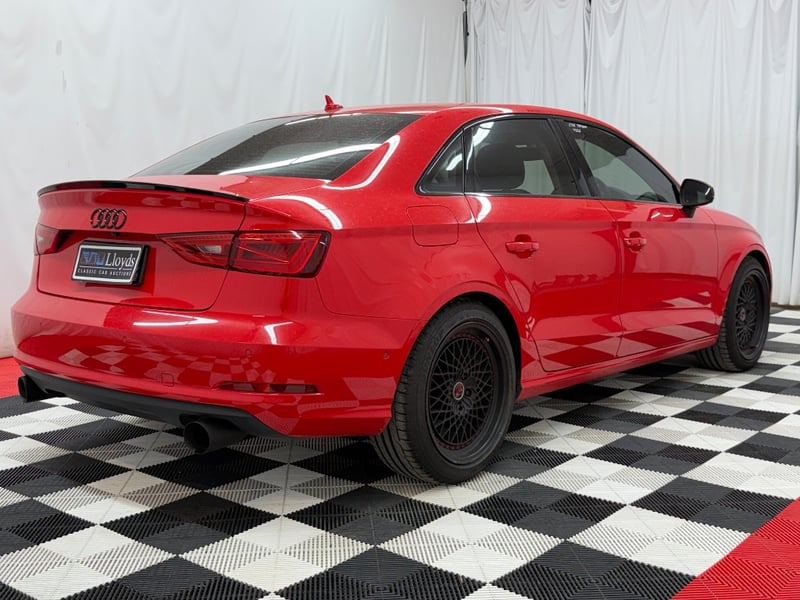 Description/extras: Audi A3 Sedan in Dynamic Red, manufactured November 2015. This turbocharged petrol sedan features a 1.8-litre inline 4-cylinder engine paired with a responsive 7-speed automatic transmission. The odometer reads 123,677 kilometres, indicating moderate usage. The vehicle presents with a professional specification including distinctive mesh alloy wheels with red lug nuts, premium leather upholstery throughout the cabin. Climate control is visible via dual-zone air conditioning controls, and an integrated MMI touchscreen display with satellite navigation enhances the driving experience. Front wheel drive provides assured handling characteristics whilst the spacious interior accommodates five passengers comfortably. This variant represents the pinnacle of compact performance engineering, combining everyday practicality with spirited driving dynamics. Service records up to 120,000 kms Minor surface wear visible on alloy wheels, light scuffing on lower door panels, minor cosmetic blemishes on bonnet and roof, Inspection recommended.