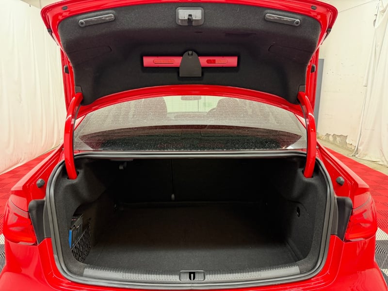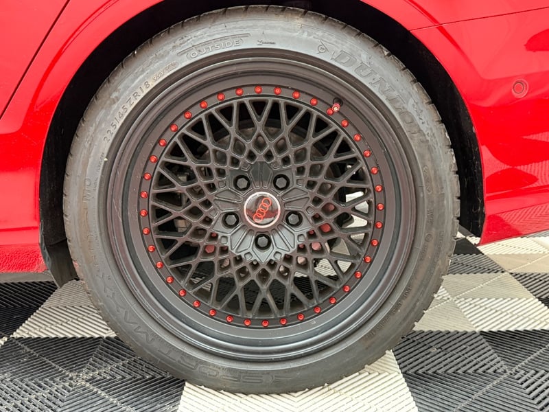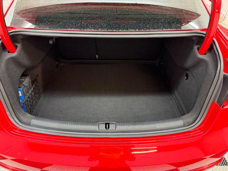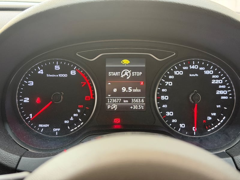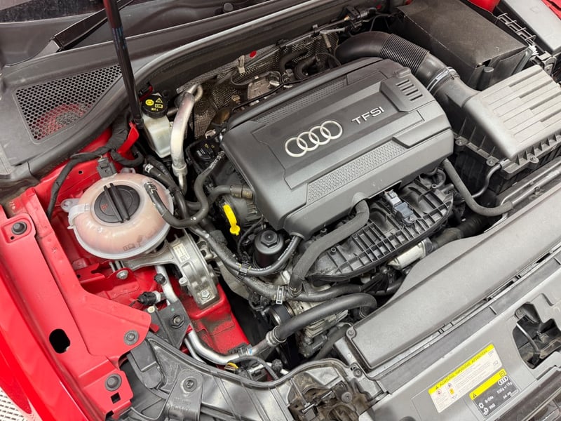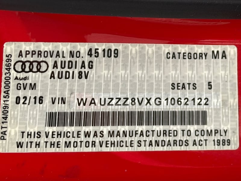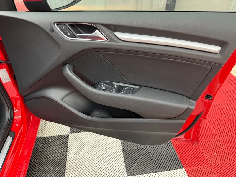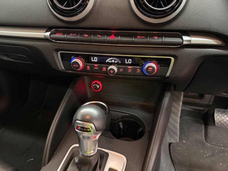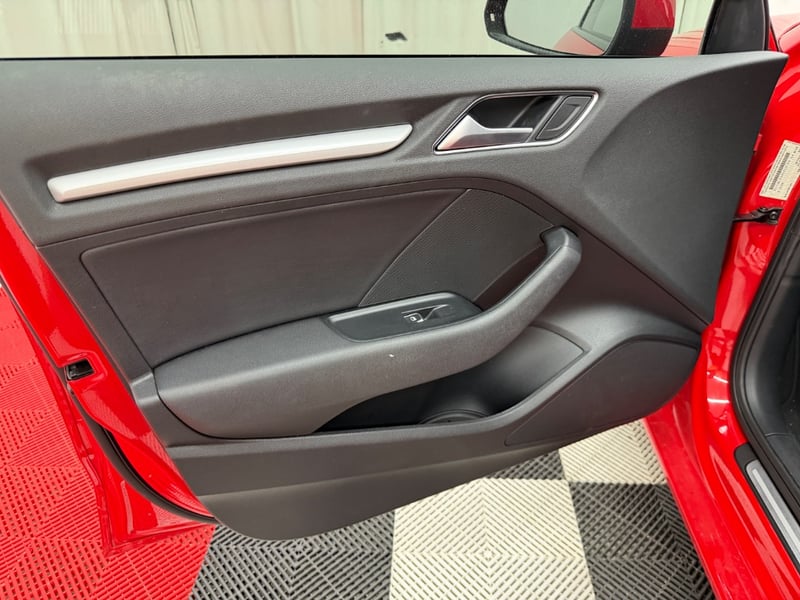Description/extras: Audi A3 Sedan in Dynamic Red, manufactured November 2015. This turbocharged petrol sedan features a 1.8-litre inline 4-cylinder engine paired with a responsive 7-speed automatic transmission. The odometer reads 123,677 kilometres, indicating moderate usage. The vehicle presents with a professional specification including distinctive mesh alloy wheels with red lug nuts, premium leather upholstery throughout the cabin. Climate control is visible via dual-zone air conditioning controls, and an integrated MMI touchscreen display with satellite navigation enhances the driving experience. Front wheel drive provides assured handling characteristics whilst the spacious interior accommodates five passengers comfortably. This variant represents the pinnacle of compact performance engineering, combining everyday practicality with spirited driving dynamics. Service records up to 120,000 kms Minor surface wear visible on alloy wheels, light scuffing on lower door panels, minor cosmetic blemishes on bonnet and roof, Inspection recommended.