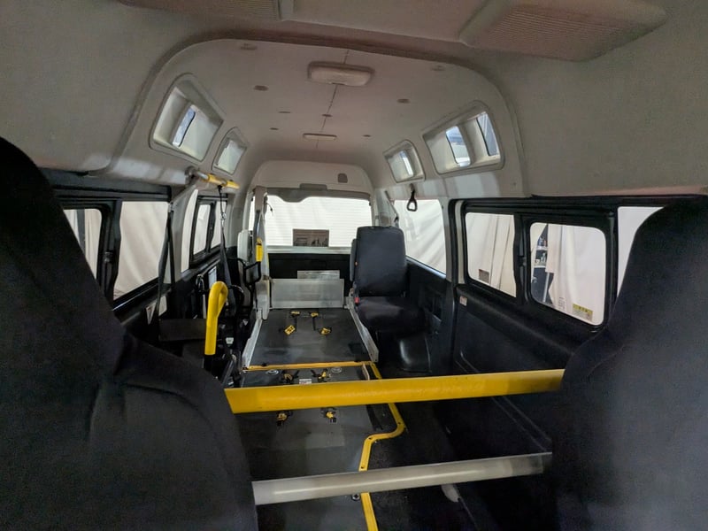 NDIS Approved hoist, Van can carry people in two wheelchairs and 2/4 people in provided seats. Retractable side step.