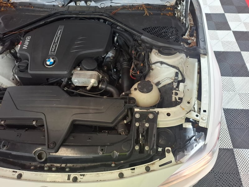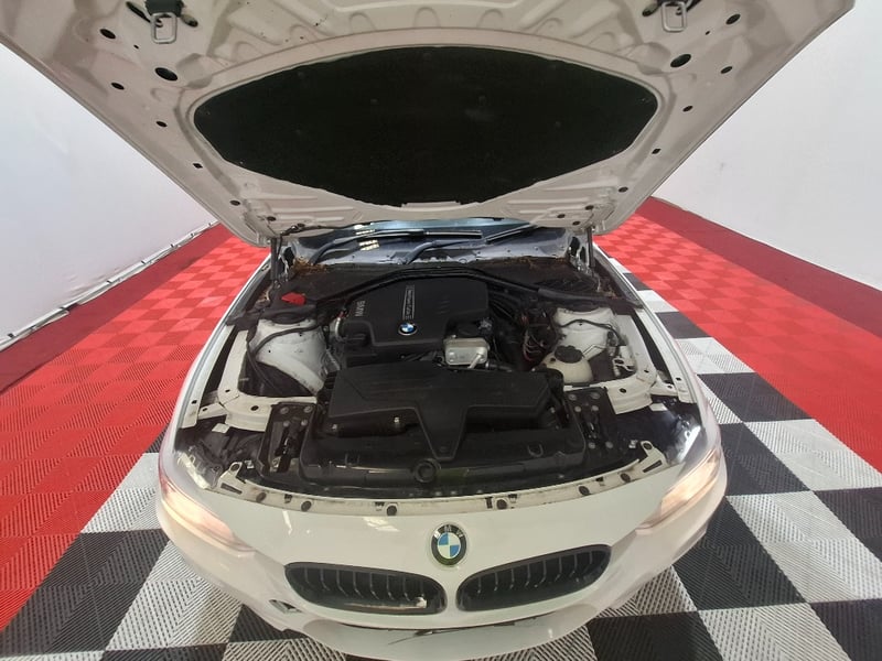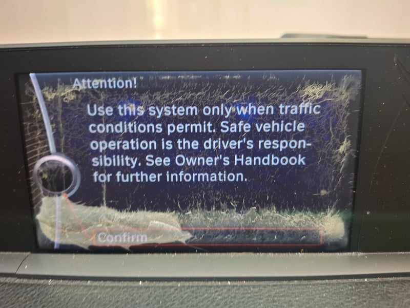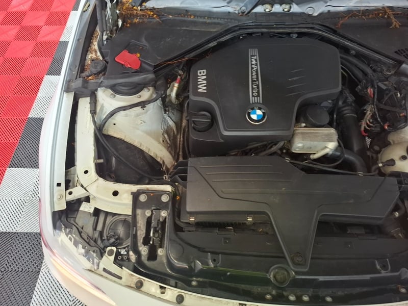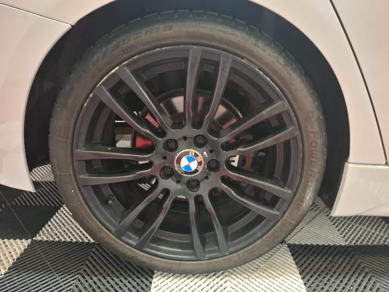 Multi-function steering wheel with cruise and media controls, paddle shifters, aports mode, eco pro mode, cup holders , front and rear mats, M series scuffs plates, rear air con, map lights storage and more. Interior plastics have minor scratches and scuffs, info screen is crazed and cracked. Exterior rubbers have faded as have plastics, small section of rust on bonnet, paint on front fender is crazed and starting to crack, fender panel cap for tow hook is missing, rims have curb damage,