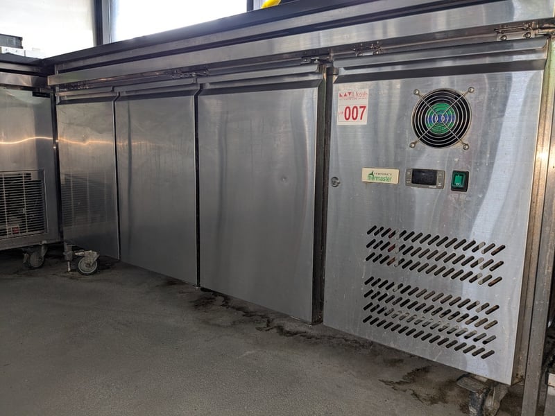 Temperate Thermaster, Freezer, Three Door Compartments, Shelving Racks, Tempratire Controller Cabinet No Key, On Castors, Approximately 850mm (H) x 1800mm (W) x 700mm (D)