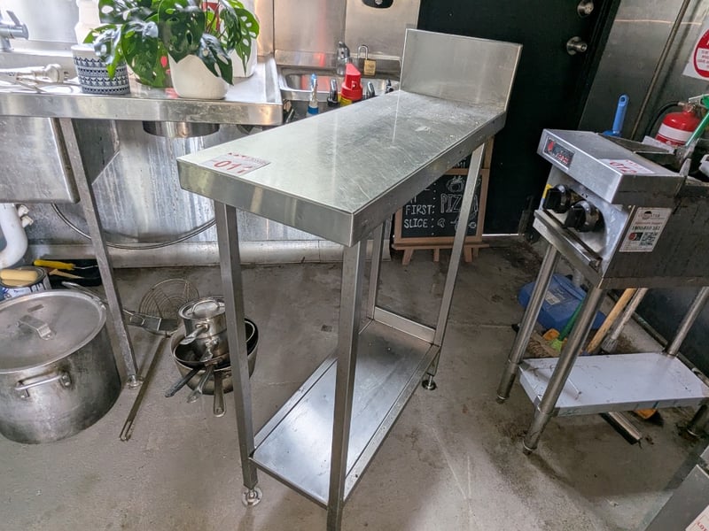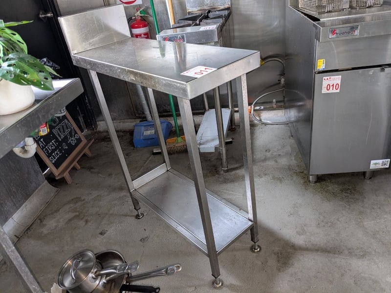 Stainless Prep Table, 2-Tier, With Headboard Approximate Dimensions 1060mm (H) x 300mm (W) x 820mm (D) Note: Buyer To Supply Own Labour, Lifting Equipment And Transport To Safely Remove Asset