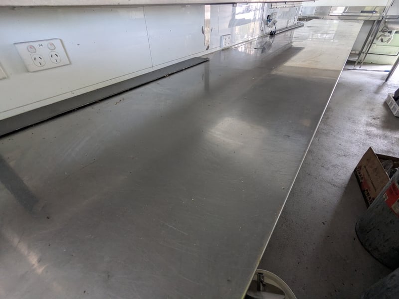 Stainless Steel Prep Table, Approximate Dimensions 880mm (H) x 4830mm (L) x 650mm (D)
