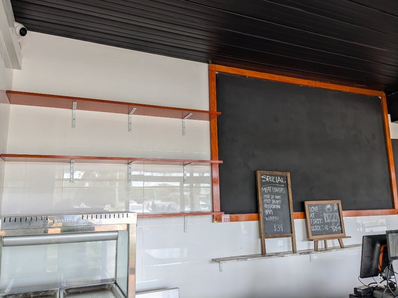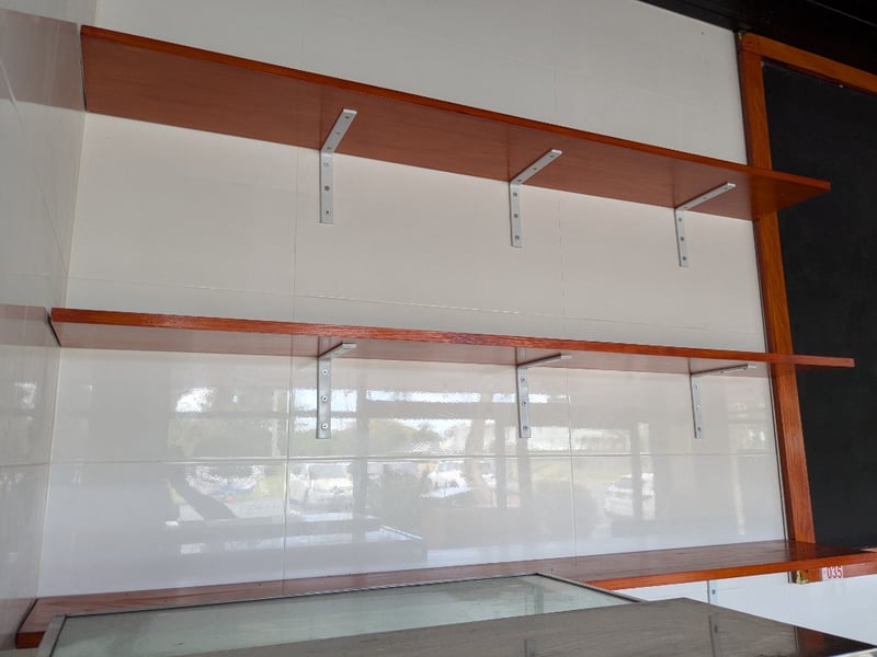 Shelving & Chalk Board's, 3-Tier Wooden Shelving With Brackets, 1 x Large Chalkboard Approximately 1480mm (H) x 2400mm (W), Includes 2 x Smaller Display Boards