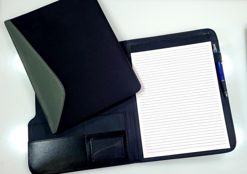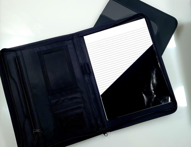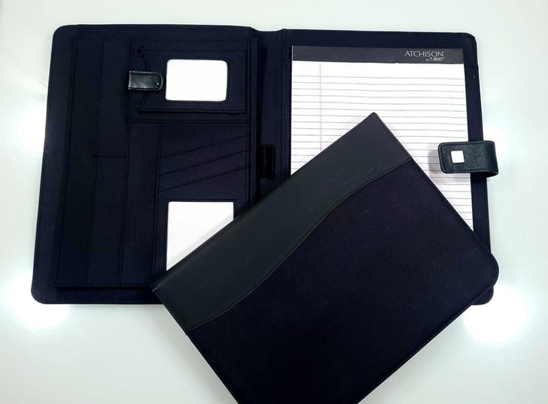 Box of 8x Various Executive Style Portfolio/ Note Pads.Box of 8 x assorted executive style black portfolios for attending meetings or taking notes. Different styles and configurations (as shown), each holds an A4 notepad, some also hold business cards, some zip up. All new (old stock) in good condition. Please see pics.