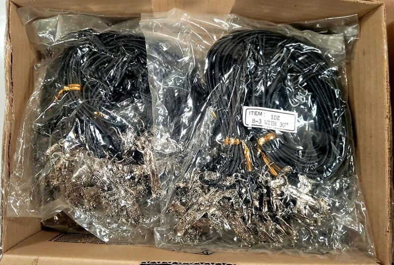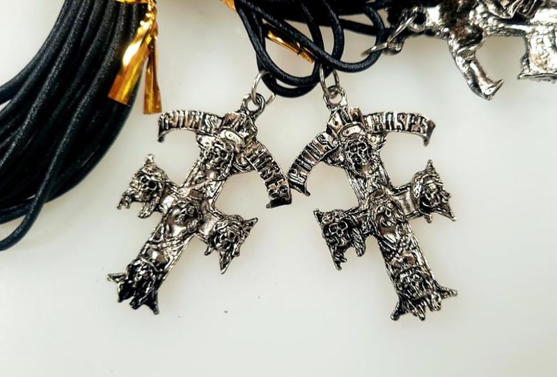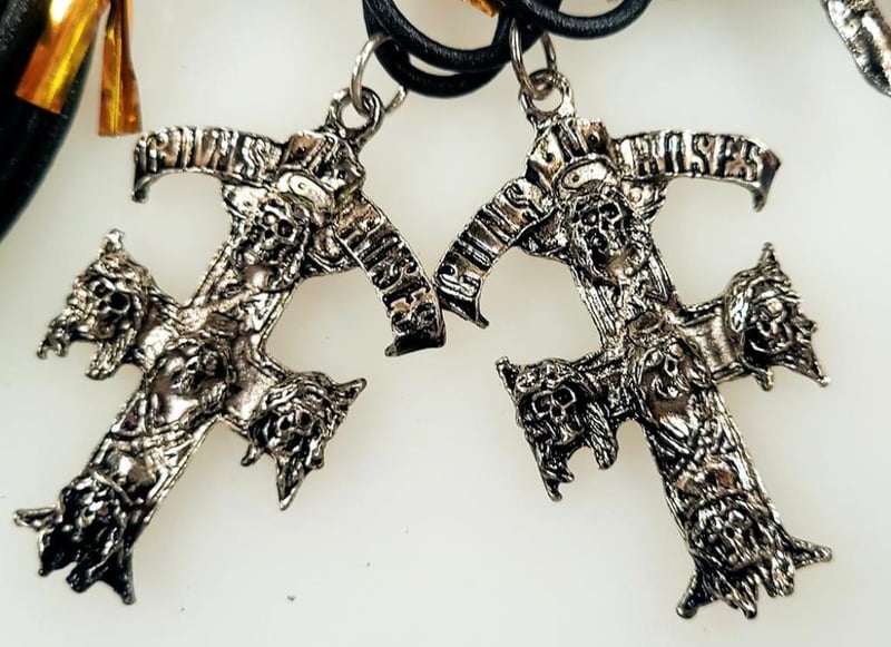 BULK Lot - 72x Guns N Roses Cross + Skull Necklaces.72 x silver tone Guns N Roses cross pendant adorned with skulls on a black cord. Classic heavy metal band.
