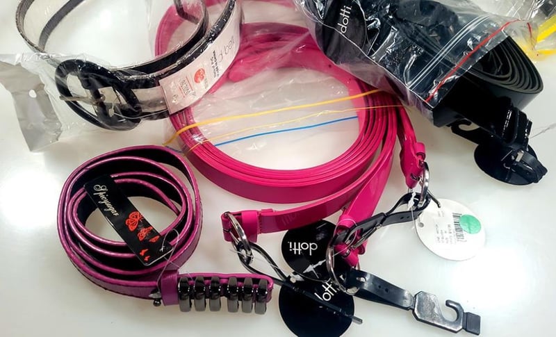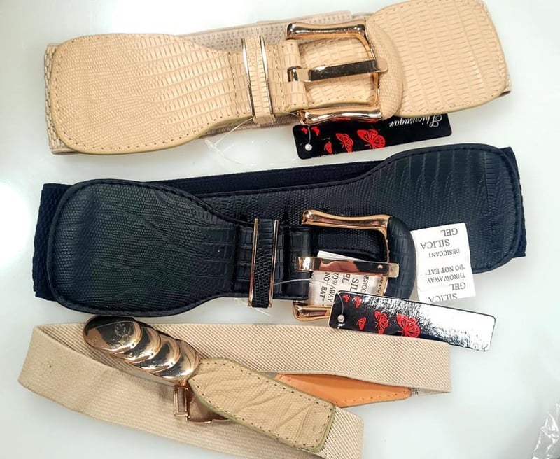 Ladies fashion belts bulk buy. 50 x belts. Brands include Dotti and Spicy Sugar and feature pink, black, clear and beige belts, some elastic. Various sizes all new with tags - please see pics. Sold as a lot.