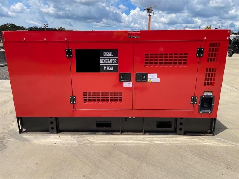 Unused Silenced 110kVA Generator, Model: EXEQ-113-3, 4 Cylinder Turbo Diesel Engine, Single & 3 Phase Outlets, Emergency Stop, Battery Isolator, Fork Pockets, Lifting point, Sound Insulation, Comes with Manual, Approximate Shipping Dimensions: 2500mm L x 1100mm W x 1300mm H, Approximate Weight: 1500kg, Serial No: 23120160