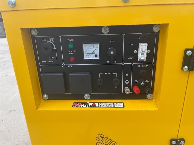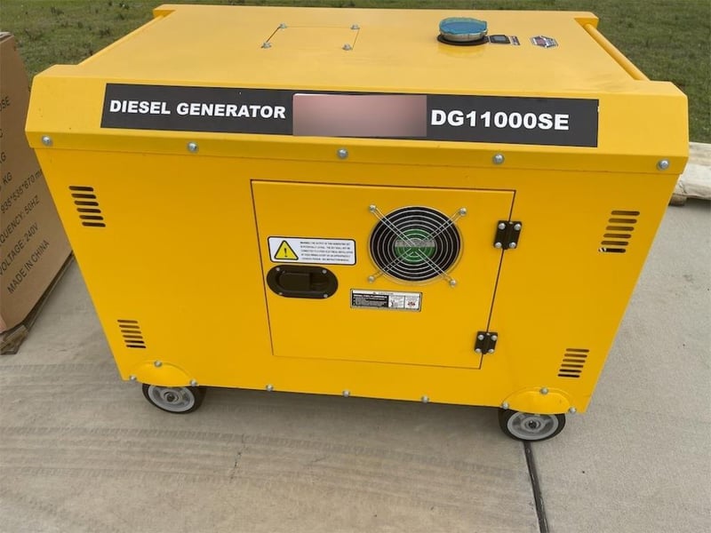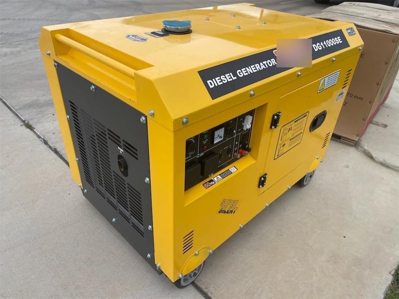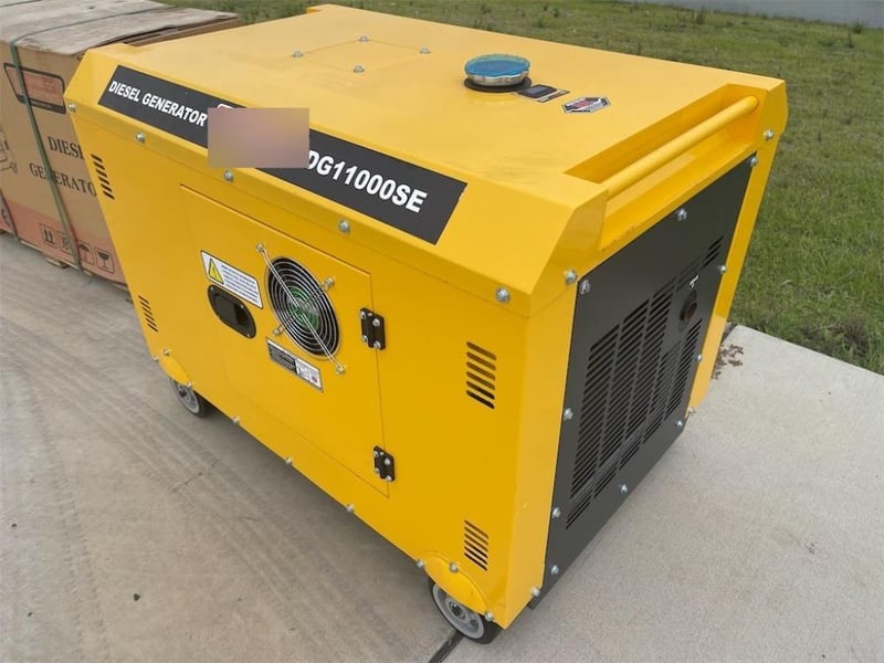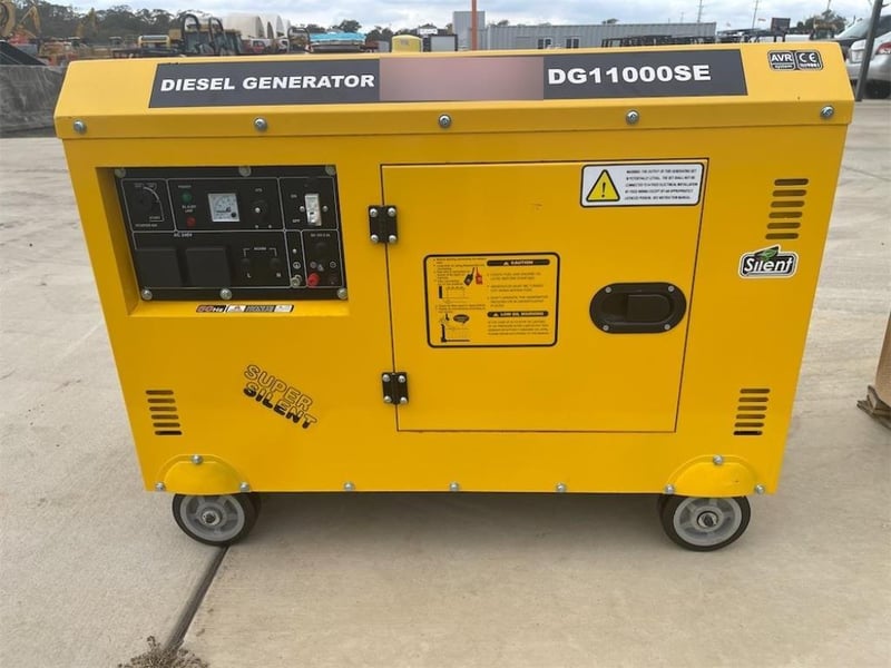 Unused 8kW Silenced Diesel Engine Generator, Model: DG11000SE, Air-Cooled Diesel Engine, Silenced Cabinet, 240V Outlets, Key Start, 50 Hz, Rated AC Output: 8kW, Rated Current: 33.3A, Approximate Shipping Dimensions: 1110mm L x 715 mm W x 760mm H, Approximate Weight: 220kg