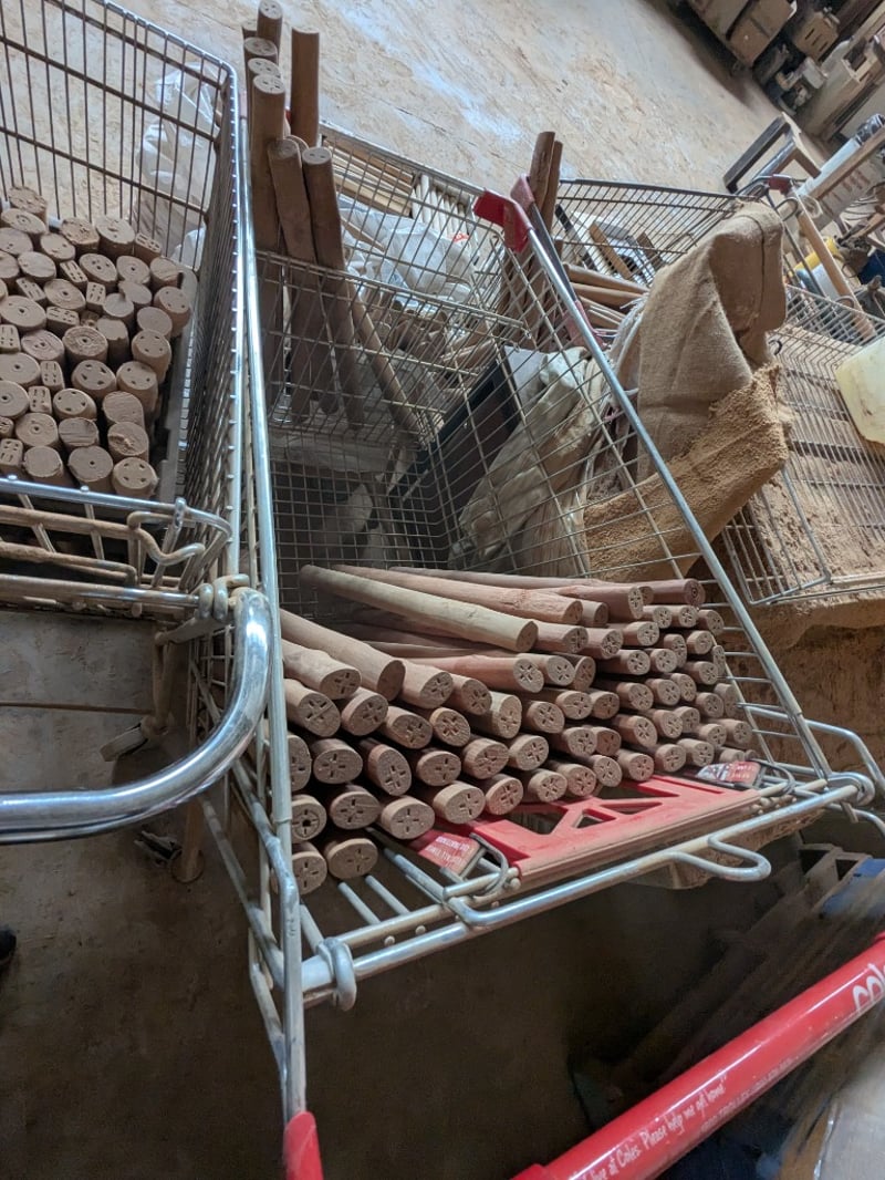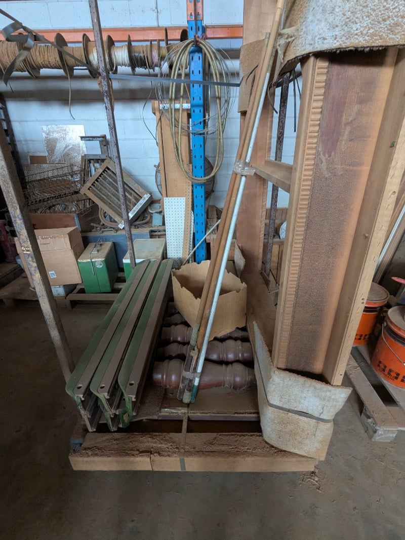 Assorted items including assorted wood sticks various height leng sizes, large wooden studio easel and more..