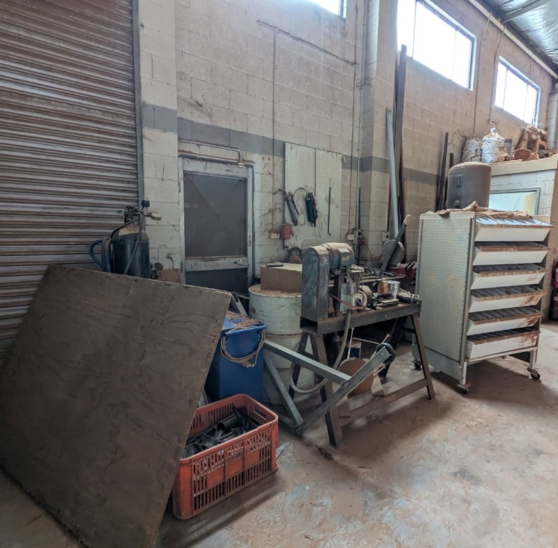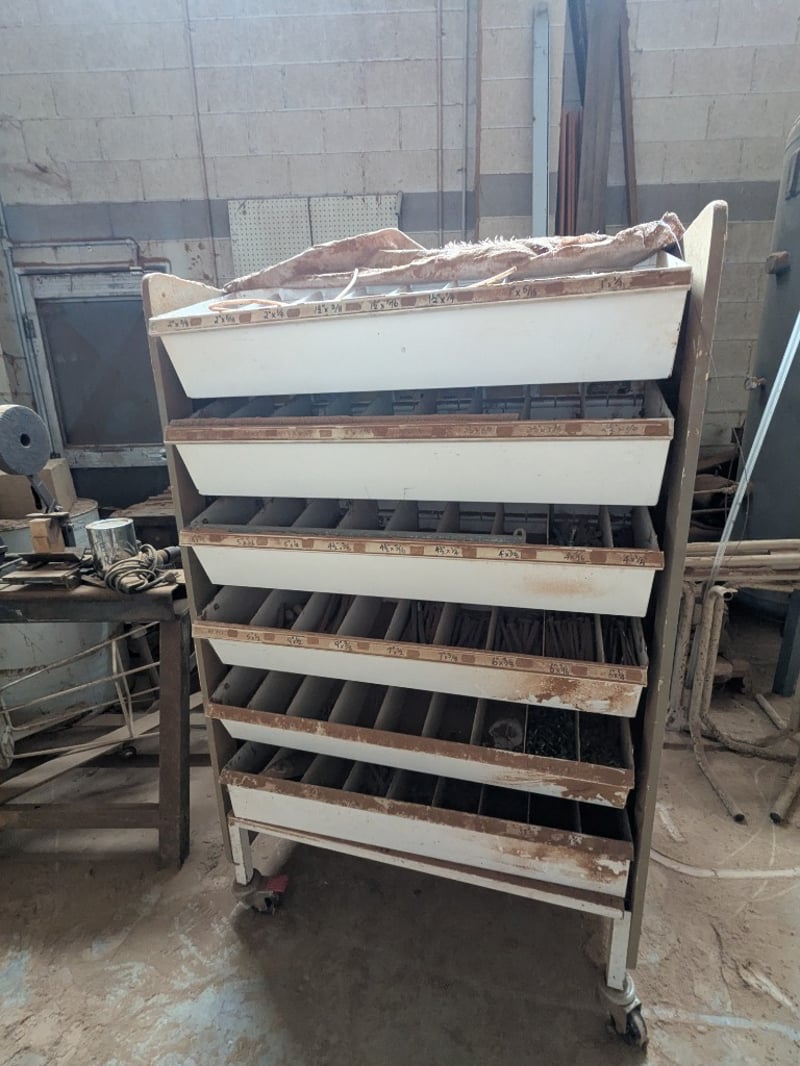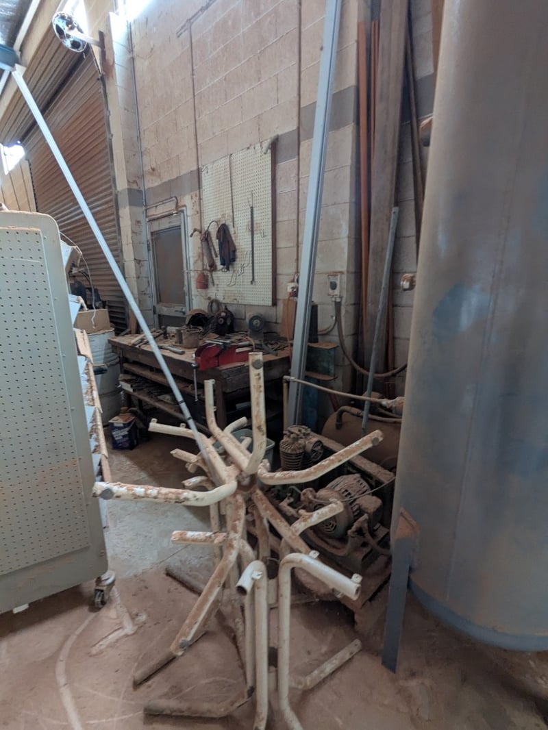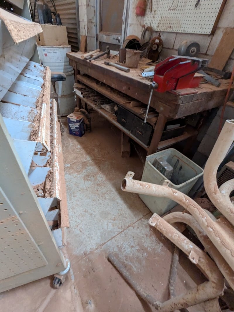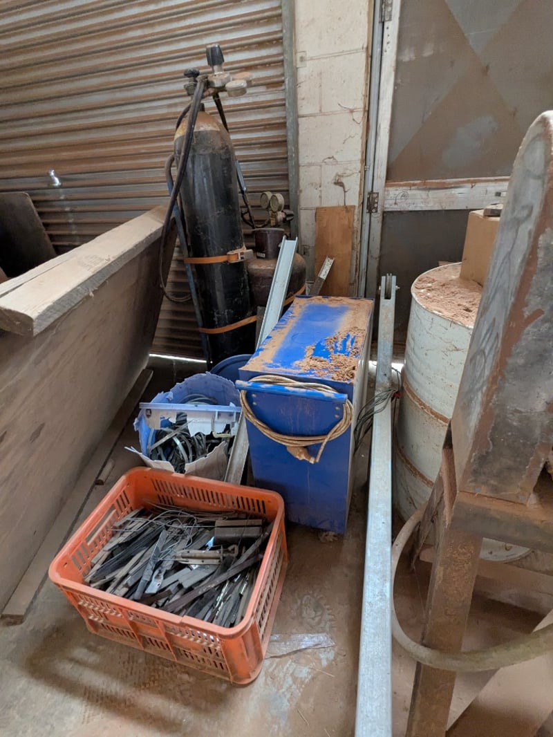 Assorted items including, mobile industrial storage trolley, heavy-duty woodworking workbench with various tools and more..