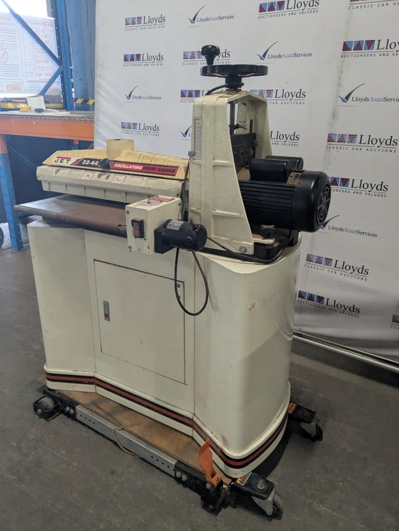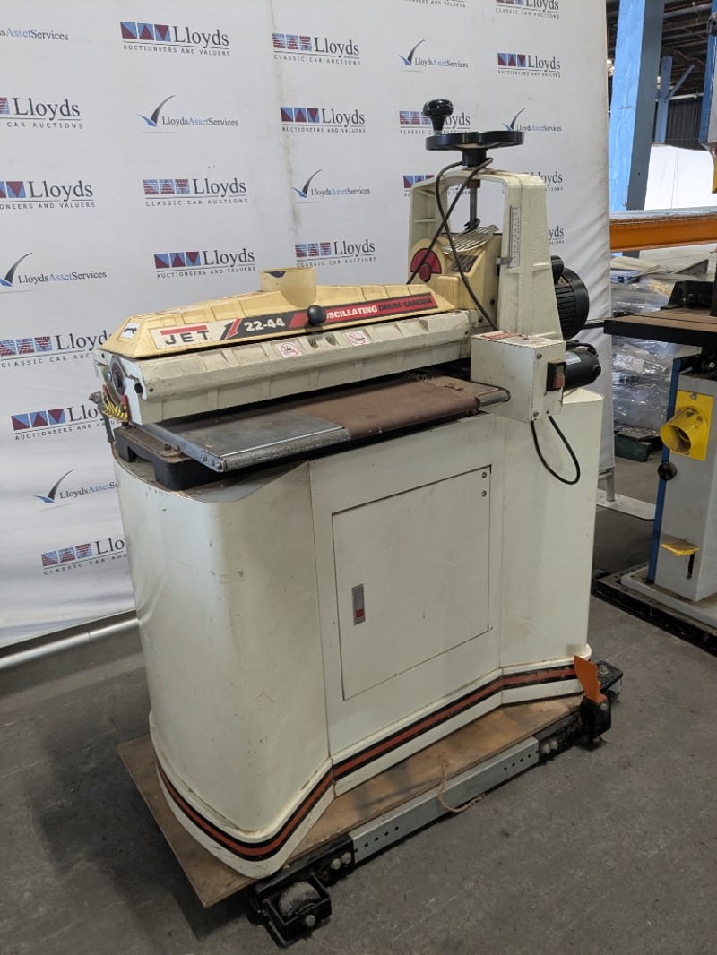 Jet 22-44 Oscillating Drum Sander. Model: 22-44OSC Serial number: 13080670 Dims: 146cm H, 110cm L, 65cm W Note: item is untested, signs of wear.