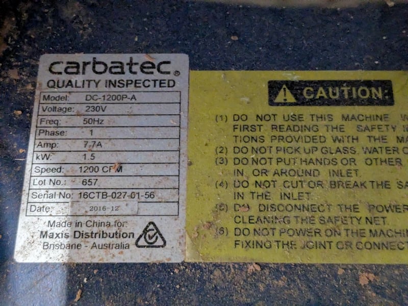 Carbatec DC-1200P-A dust collector.