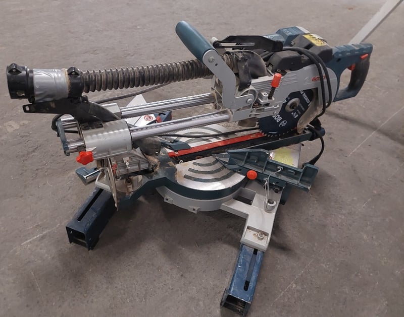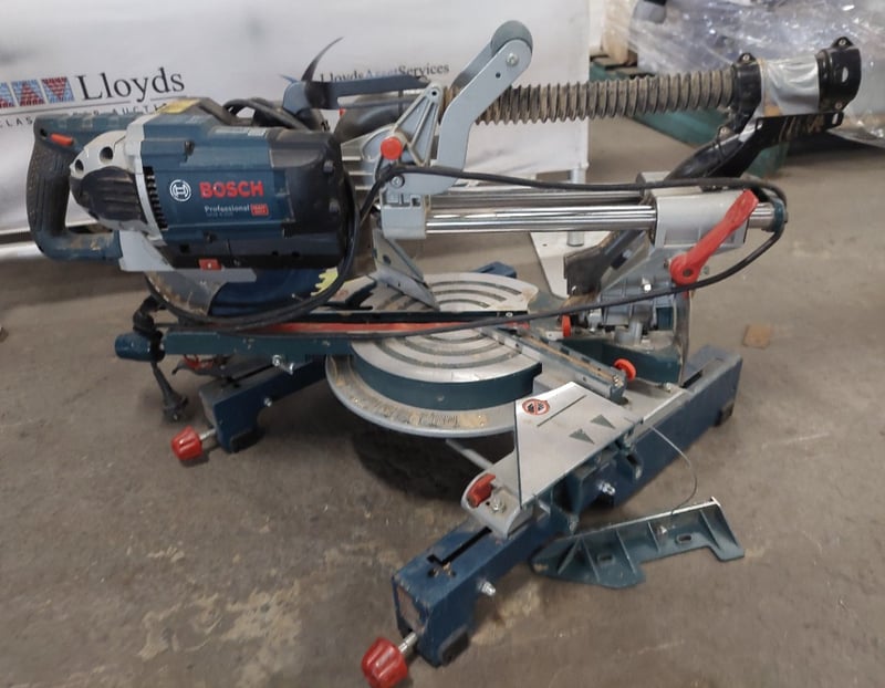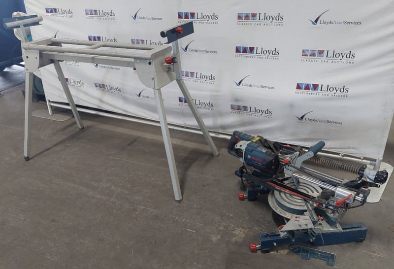 Assorted items including, Bosch T1B Folding-Leg Miter Saw Stand and a Bosch GCM 8 SDE Professional sliding mitre saw.