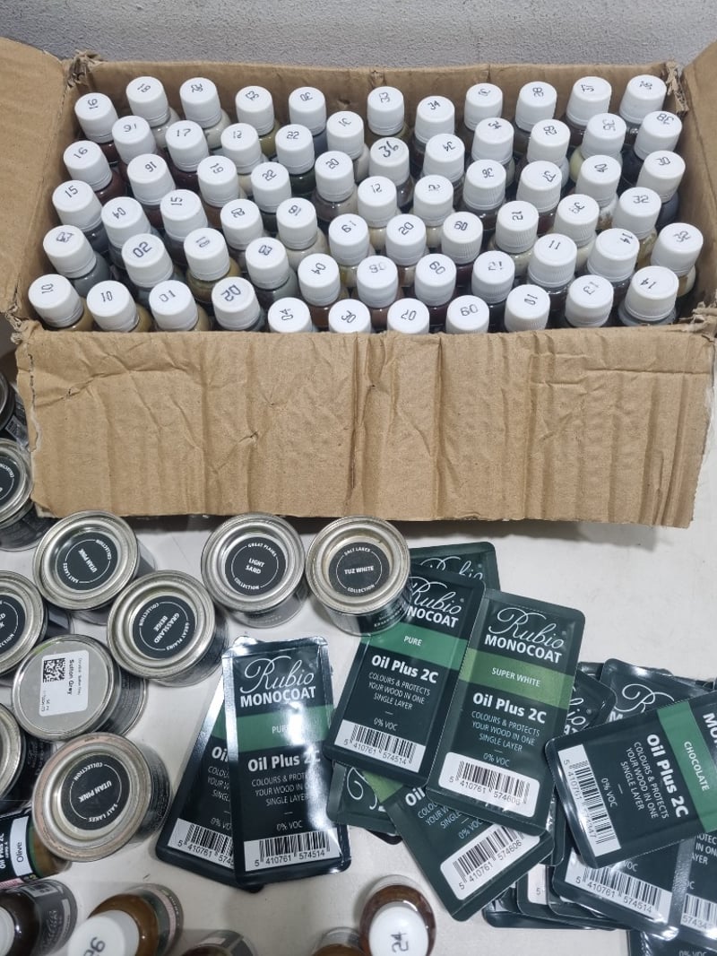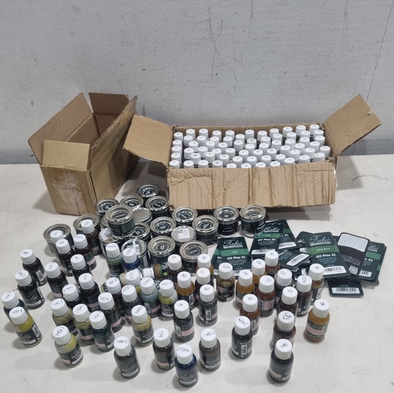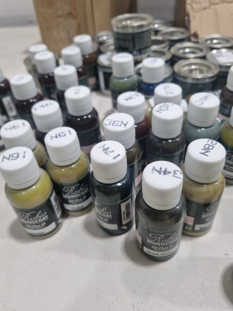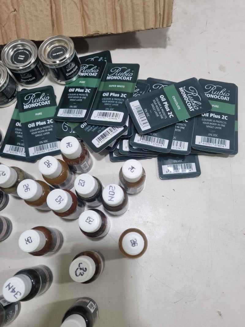 Assorted lot of oil plus monocoat, Rubio brand Qty to lot Sold as lot