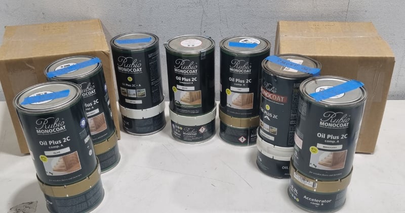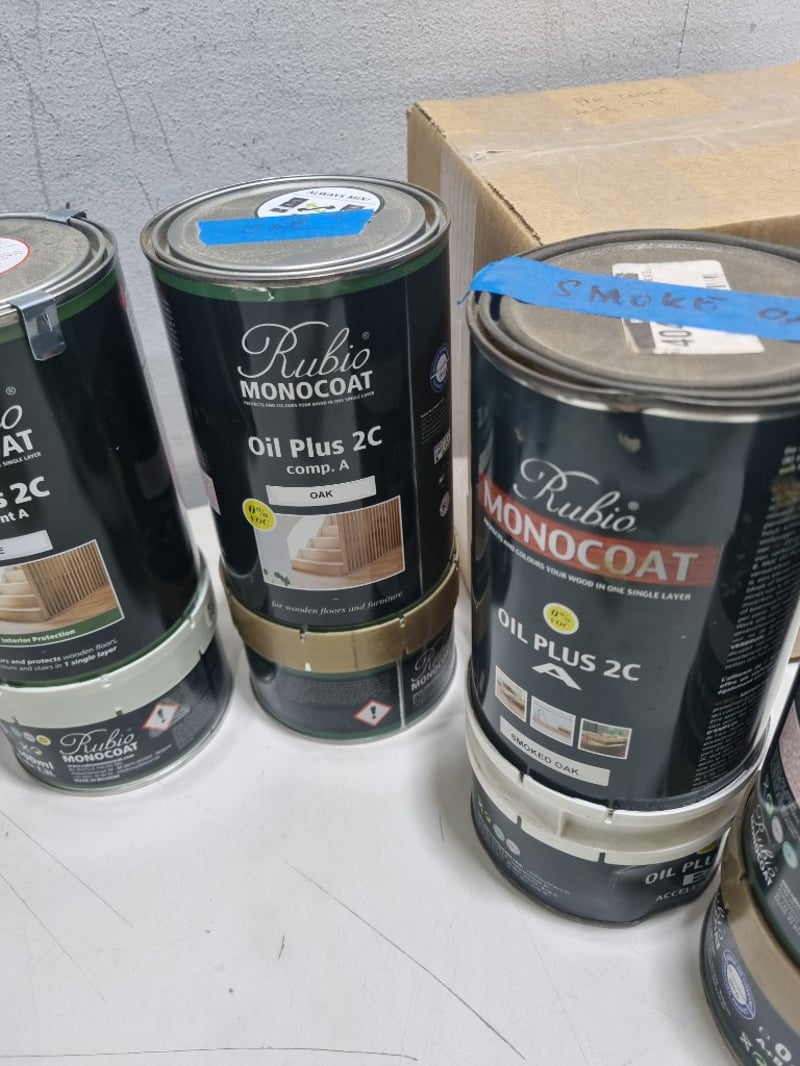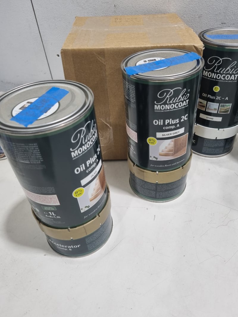 Rubio Monocoat oil plus, assorted colours,1.3L and more. Qty to lot Sold as lot