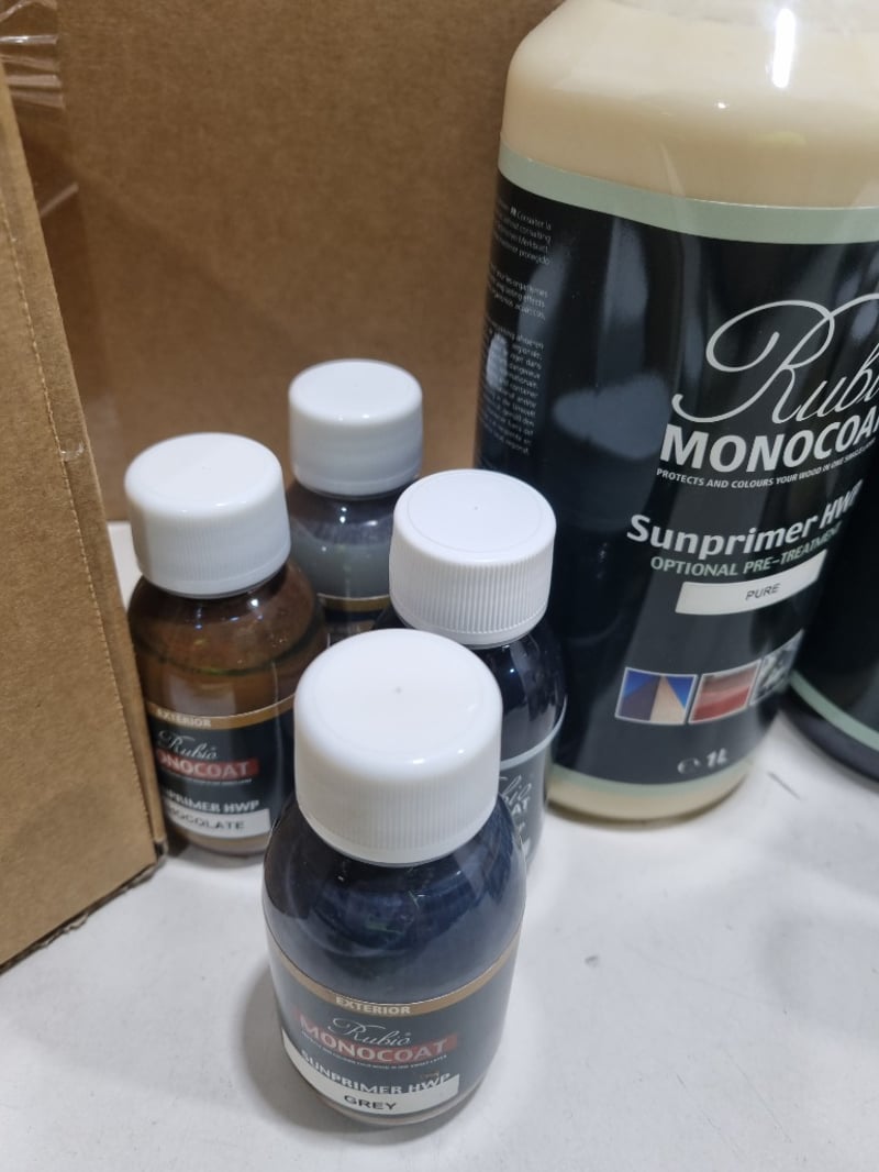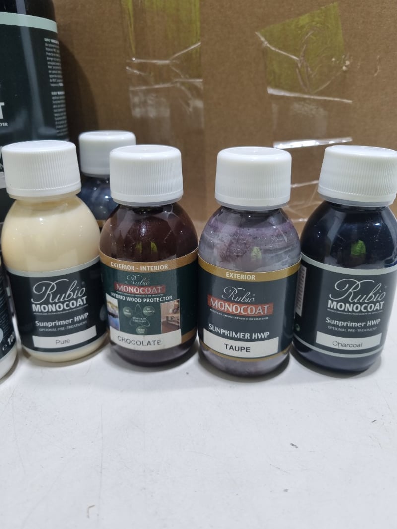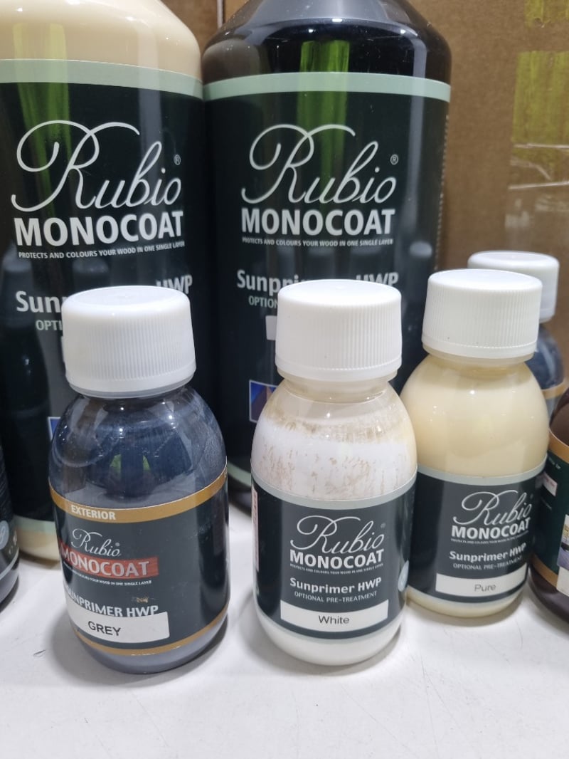 Assorted Rubio items,includes,monocoat sunprimer, precolour,and more.... Qty to lot