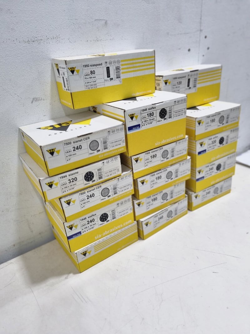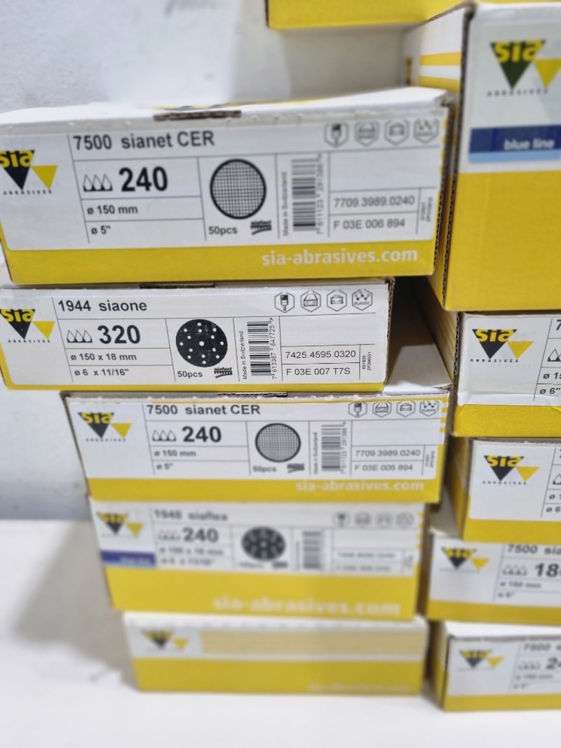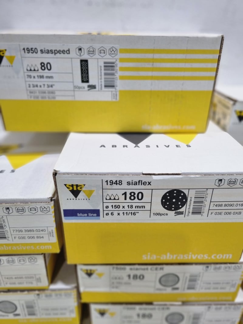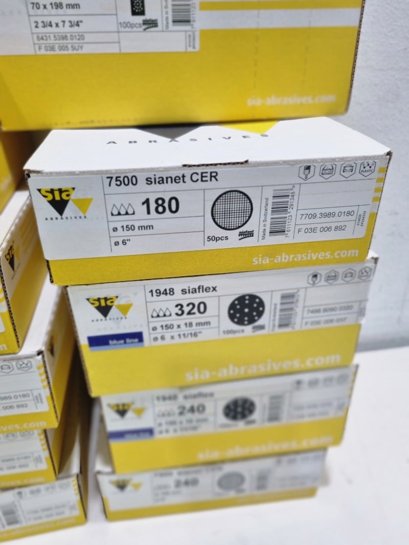 Abrasives sanding discs and sheets from the professional Sianet CER, Siaspeed, and Siaflex product lines.