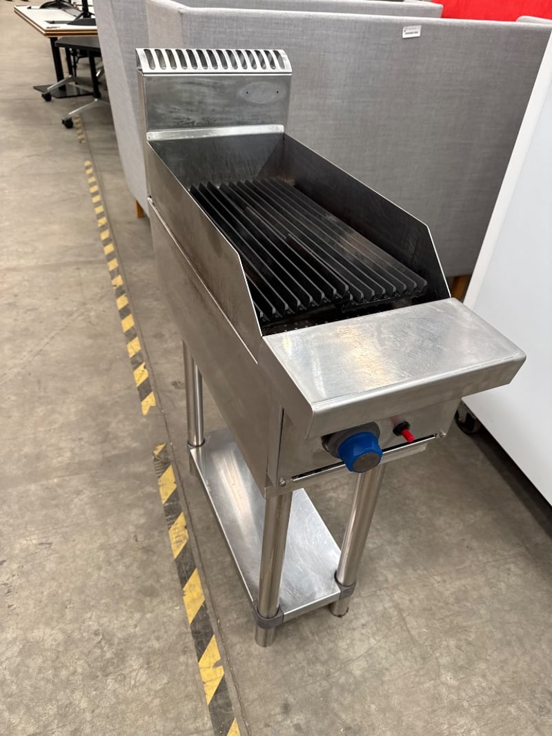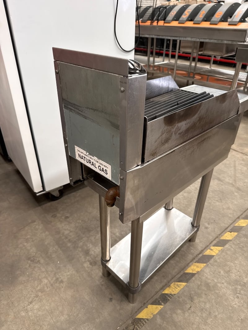 Char Grill, Cookrite, 1 burner, with stand, Natural Gas, Stainless Steel. Approx Dimensions- 30w X 80d X 108h.