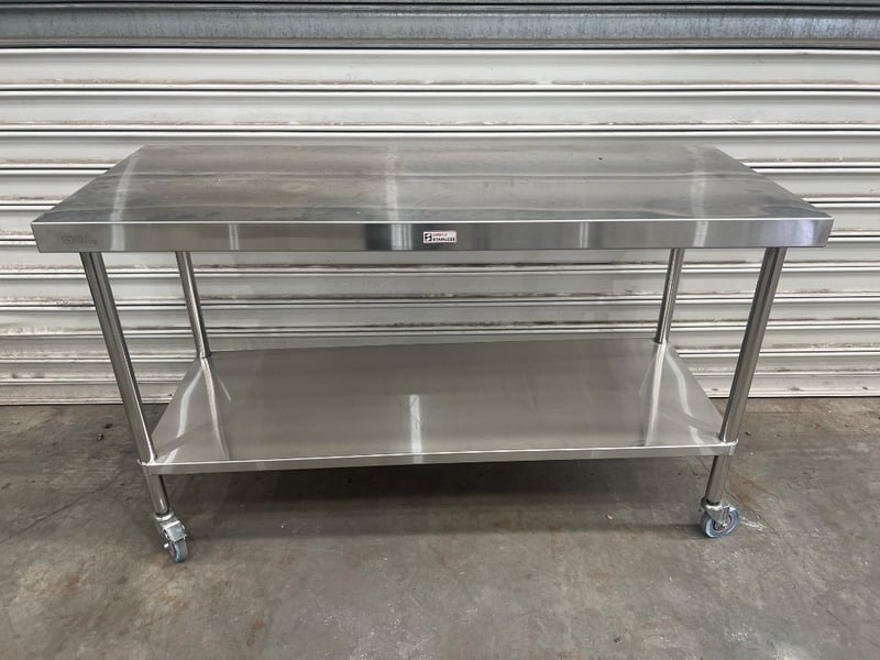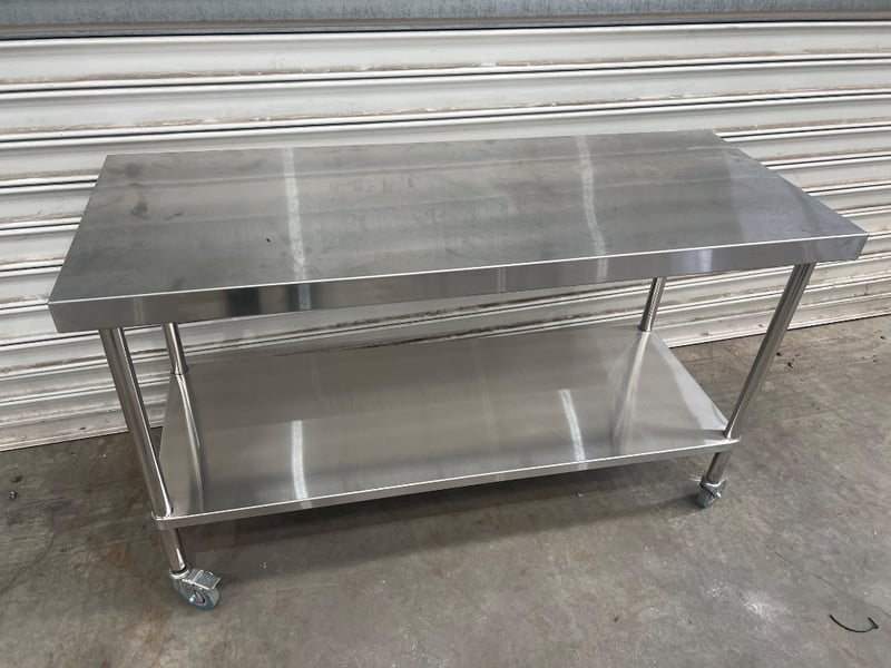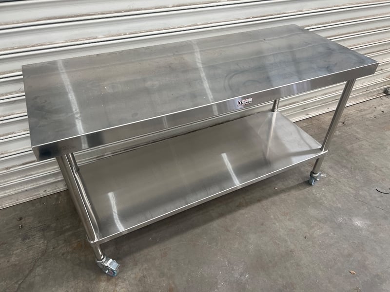 S/S bench, simply stainless, unknown model, serial; A 03.61500.006, stainless steel, freestanding Dimensions approx; 150W x 60D x 90H cm