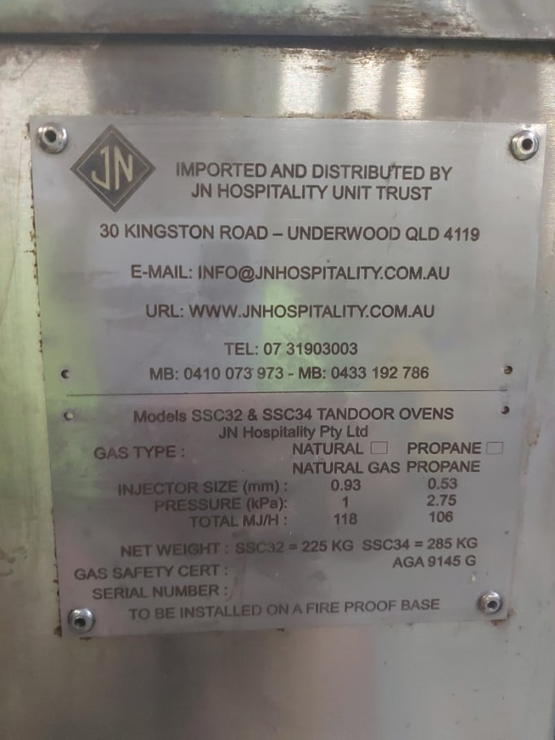 Tandoor Oven, JN Hospitality, TBC , Stainless steel Dimensions: H 98cm W 76cm 78cm
