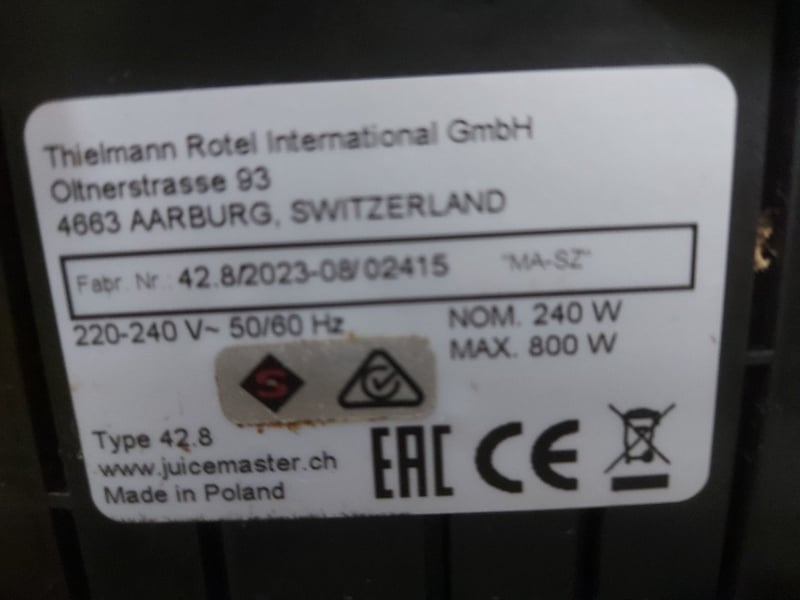 Juicer, Juice Master, Model: 42.8, Broken Collection Container (See Images)