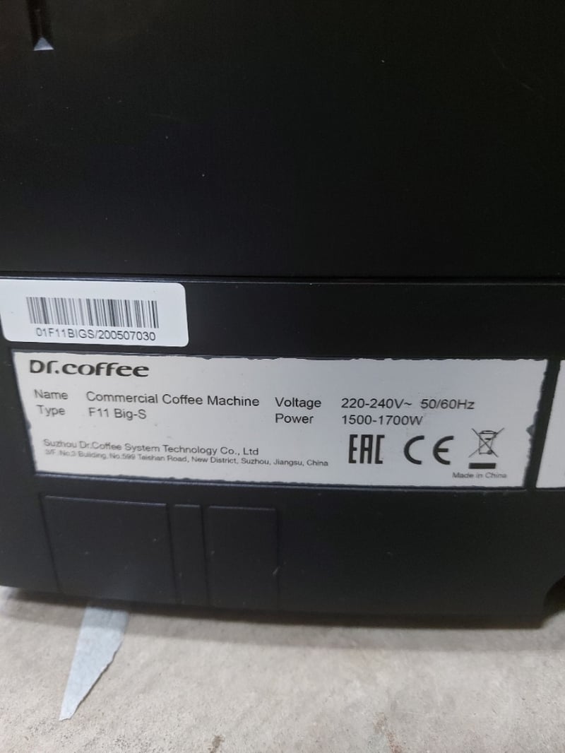 Auto Coffee Machine, Dr Coffee, Model: F11 BIG-S Dimensions: H 60cm W 42cm D 50cm