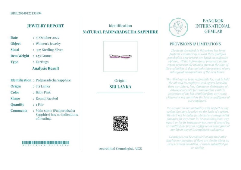 Comments : Main Stone (Padparadscha Sapphire) Has No Indications Of Heating.
