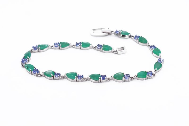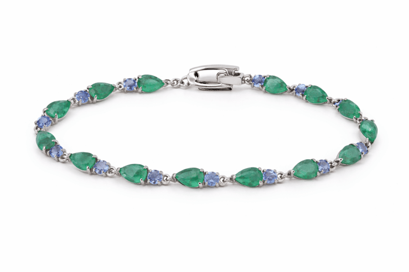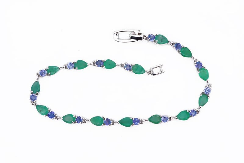 NATURAL EMERALD & TANZANITE BRACELET ON 925 SILVER - WITH CERTIFICATE