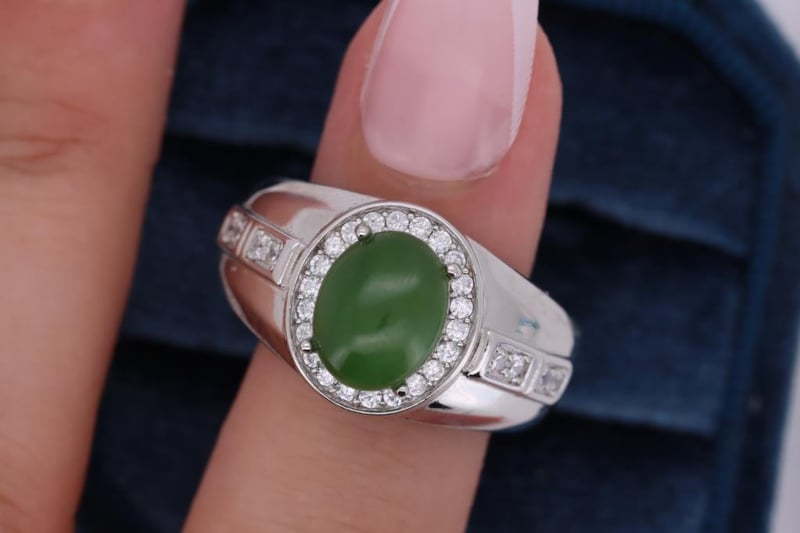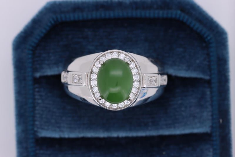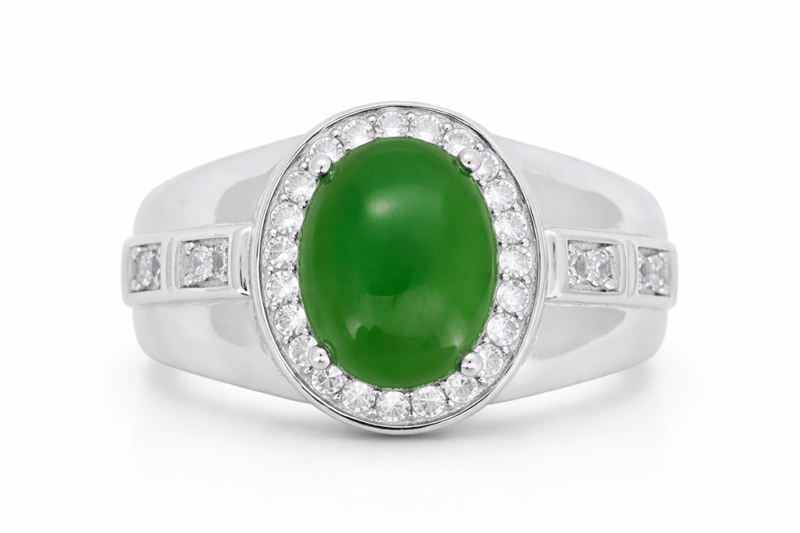 NATURAL BURMESE JADE RING ON 925 SILVER - WITH CERTIFICATE