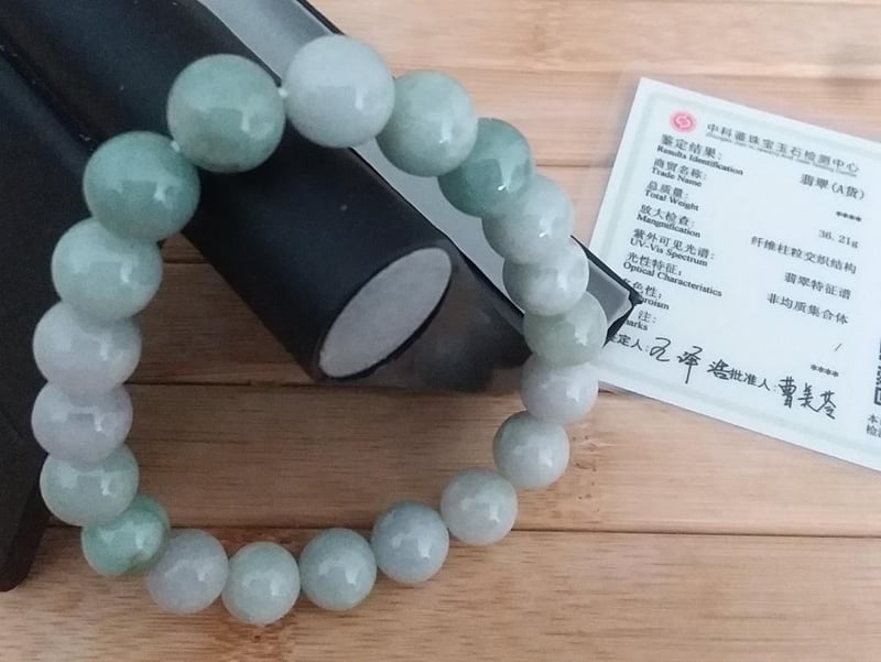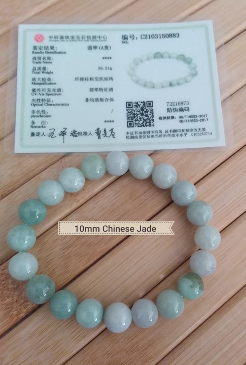 CERTIFIED ICE GREEN CHINESE JADE 10MM STRETCH BRACELET