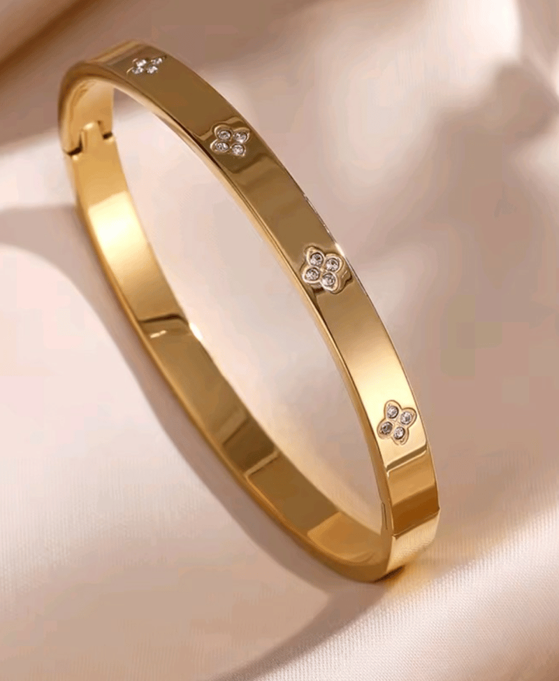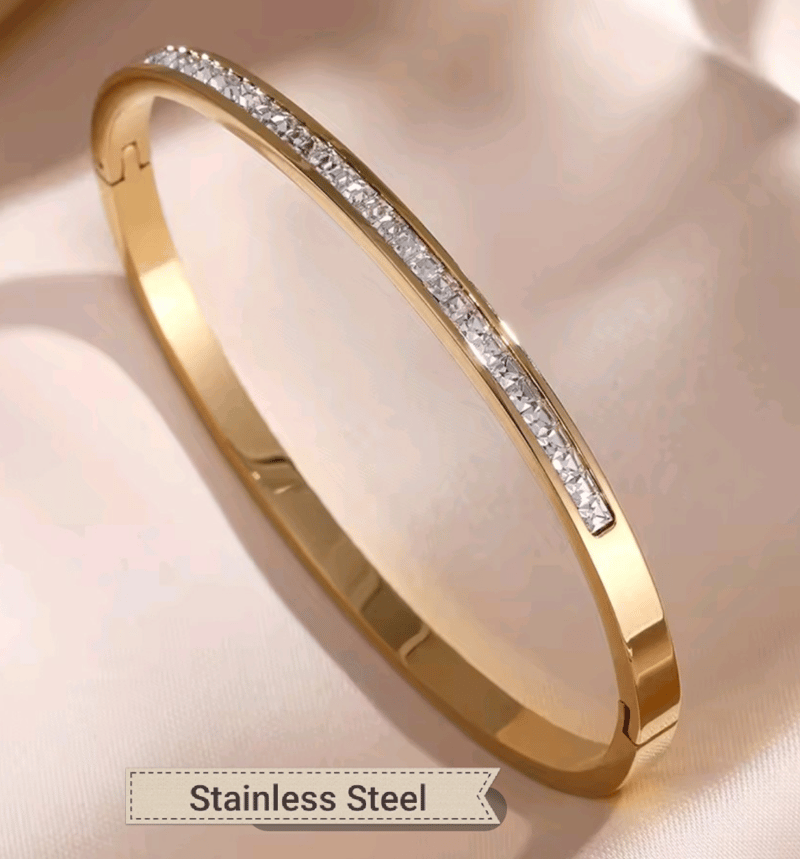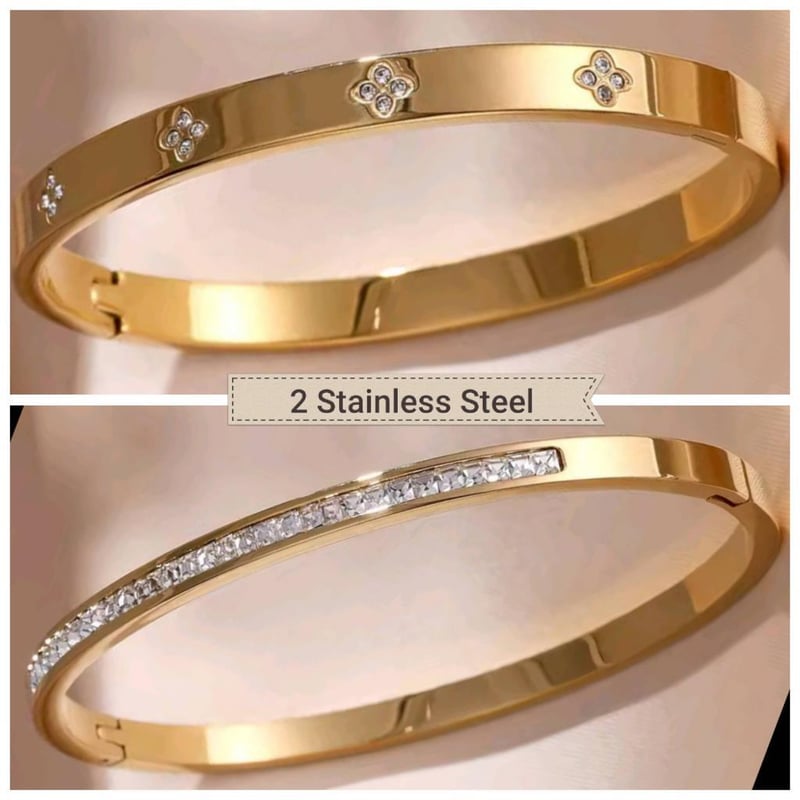 2 X GOLD STAINLESS CUBIC ZIRCONIAS OPENING BANGLES