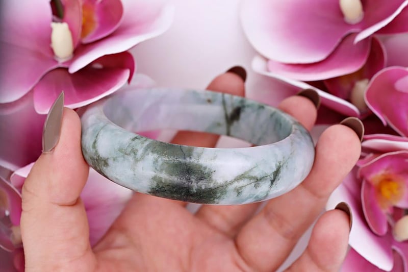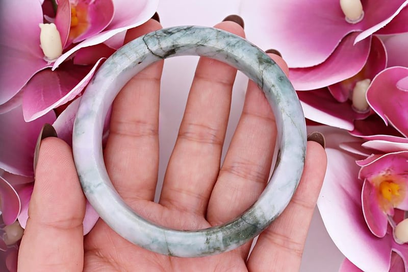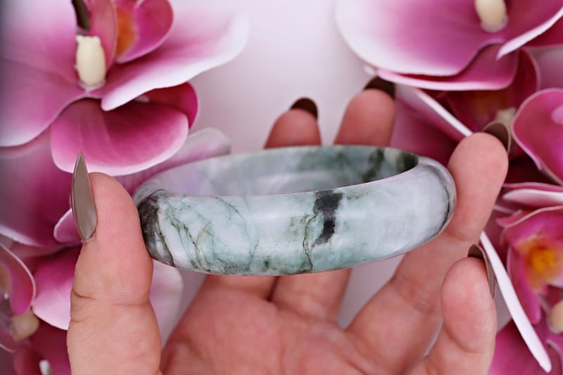 NATURAL BURMESE JADE BANGLE ON 925 SILVER - WITH CERTIFICATE Gemstone : Natural Burmese JadeCertificate Number : Bigl20240122133314Item Total Weight : 382.92 GramsGemstone Color : Green, LavenderShape : N/AMeasurement/Size : 58.3Comments : No Resin Is Detected.Referred As 'Type A' Jade. ✻ Verify Report Online At Www.Bangkokinternationalgemlab.Co Condition: Good - Refer Images 01611165+2