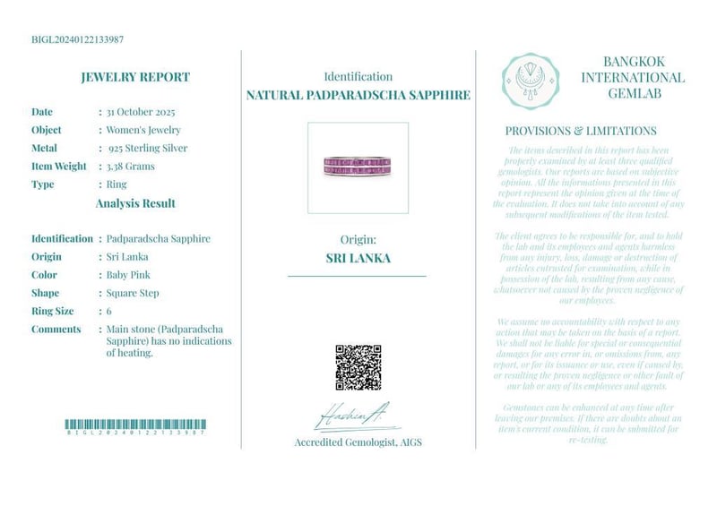 Comments : Main Stone (Padparadscha Sapphire) Has No Indications Of Heating.