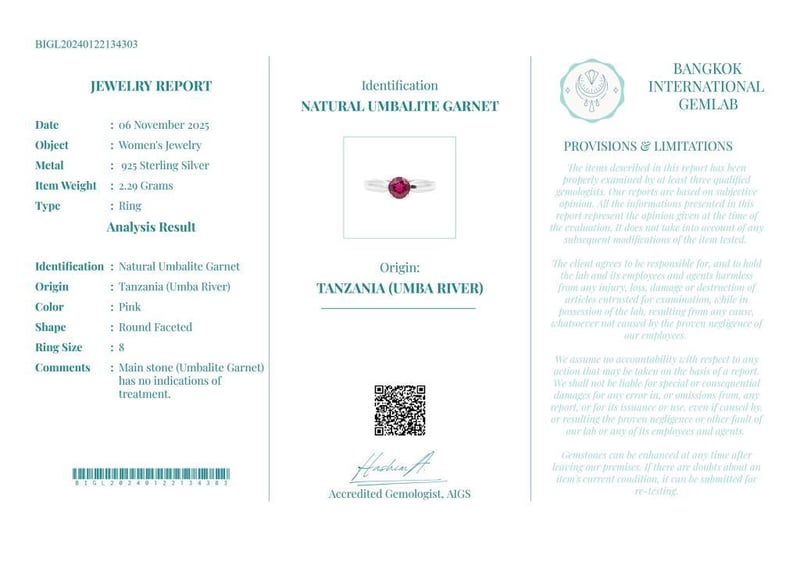 Comments : Main Stone (Umbalite Garnet) Has No Indications Of Treatment.