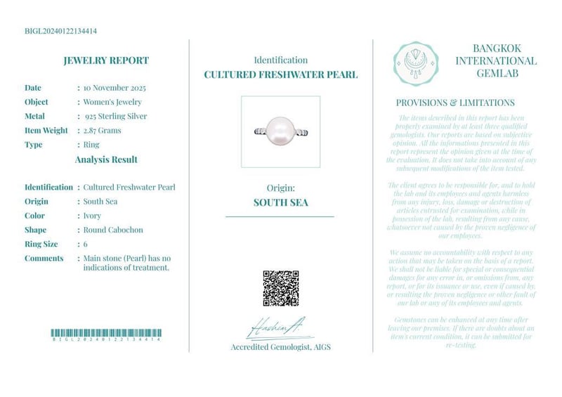 Comments : Main Stone (Pearl) Has No Indications Of Treatment.