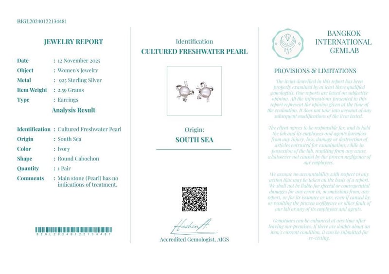 Comments : Main Stone (Pearl) Has No Indications Of Treatment.