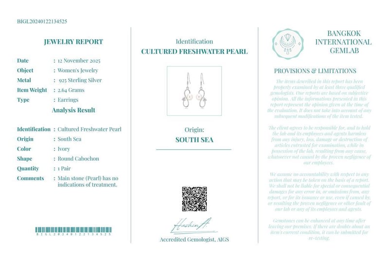 SOUTH SEA PEARL EARRINGS ON 925 SILVER - WITH CERTIFICATE