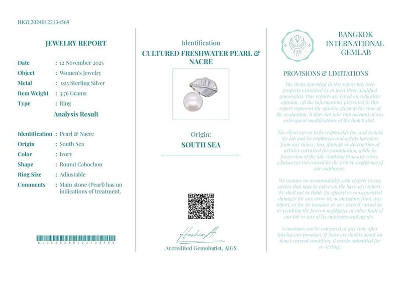 Comments : Main Stone (Pearl) Has No Indications Of Treatment.