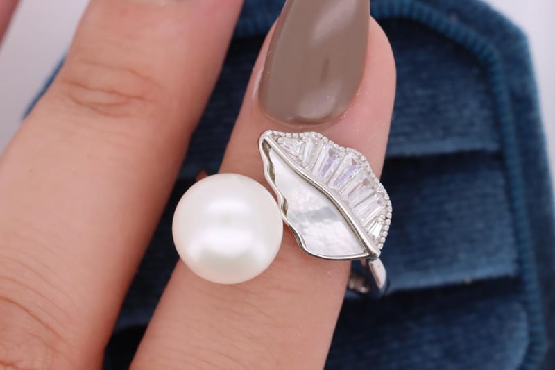 CULTURED FRESHWATER PEARL & NACRE RING ON 925 SILVER - WITH CERTIFICATE
