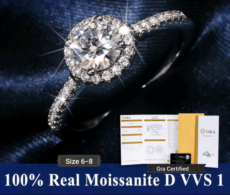 GRA CERTIFIED MOISSANITE ENGAGEMENT RING 5MM 0.5 CT ADJUSTABLE WITH CERTIFICATE