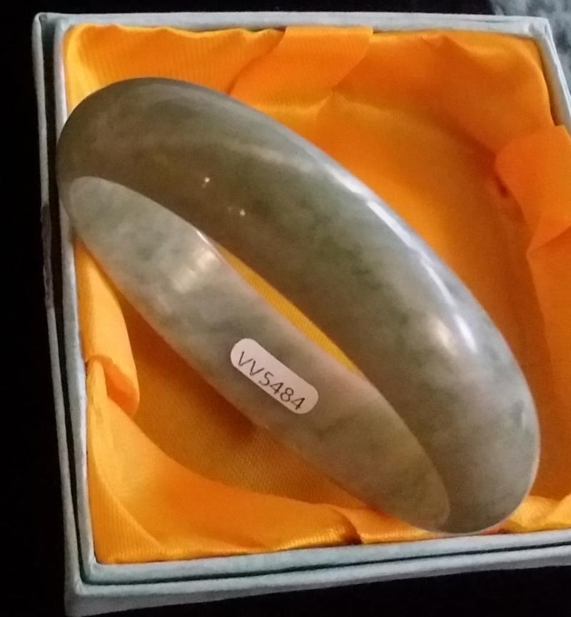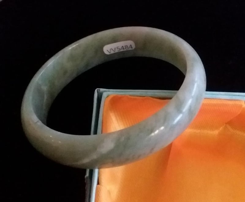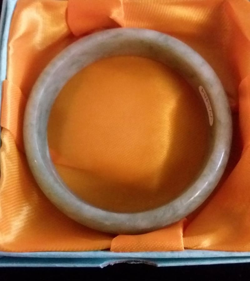CHINESE LIGHT GREEN JADE BANGLE IN SATIN BOX