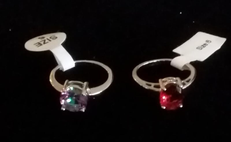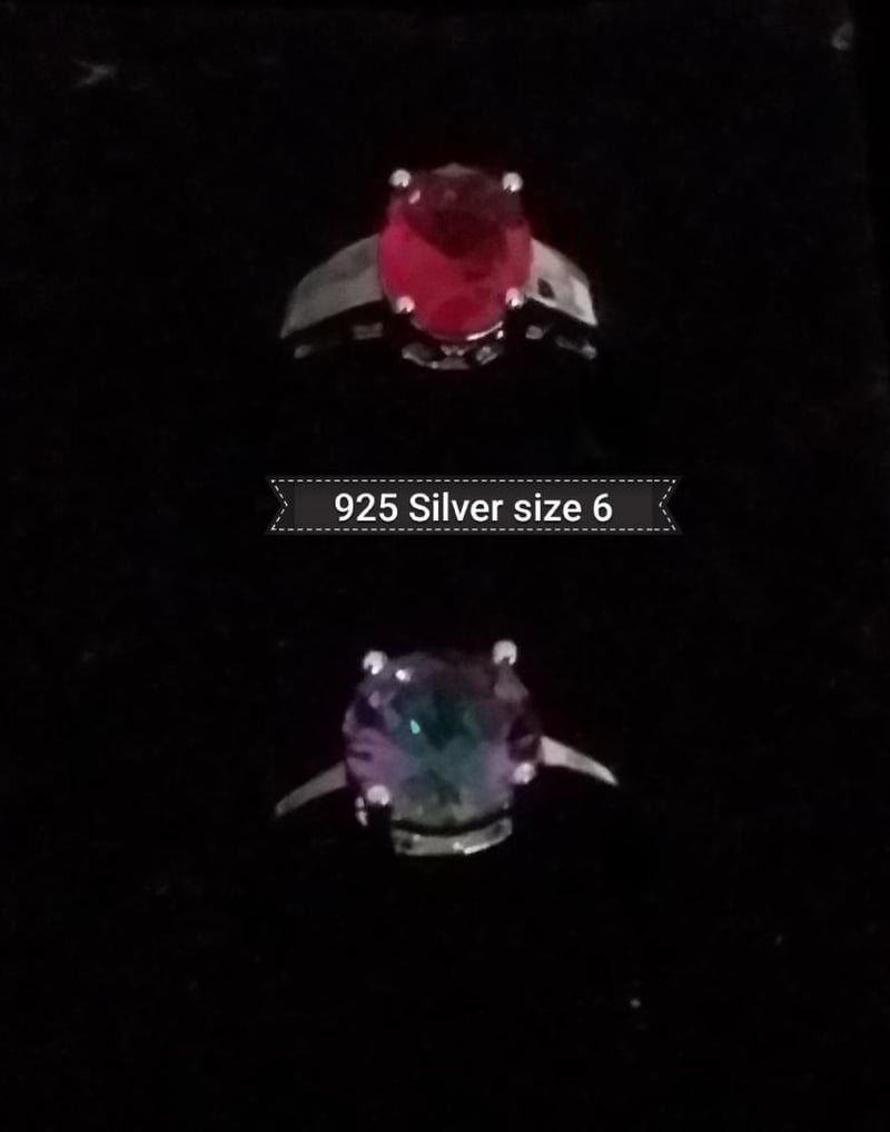 2 X 925 SILVER RINGS WITH RED TOPAZ AND MYSTIC RAINBOW TOPAZ CRYSTALS SIZE 6