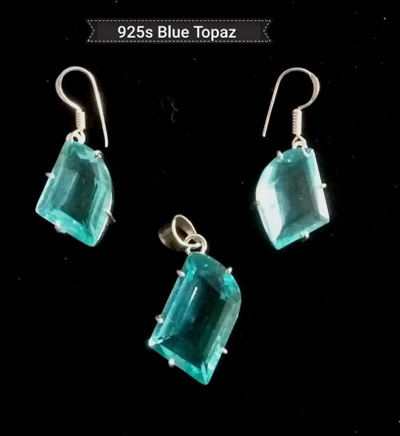 SET OF PENDANT AND EARRINGS 925 SILVER AND AQUA BLUE TOPAZ