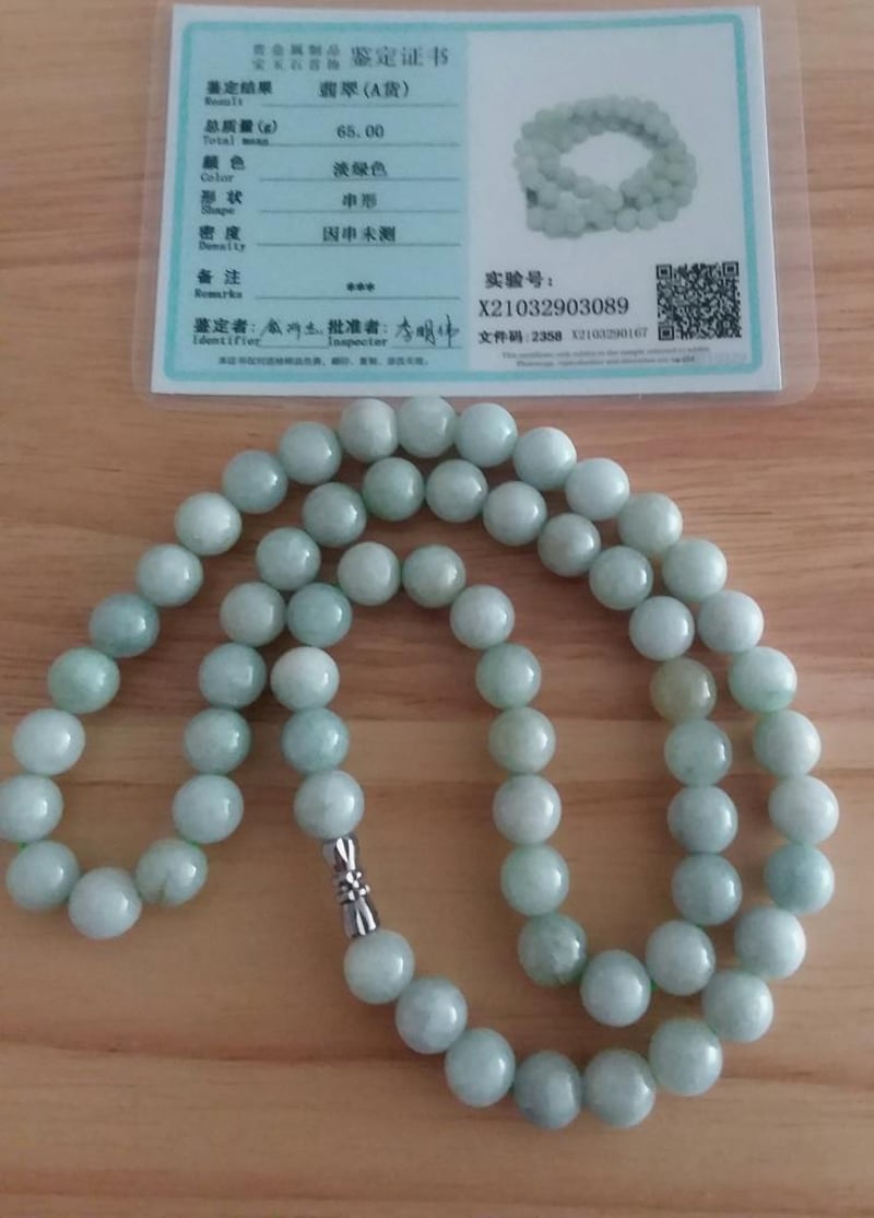 CERTIFIED CHINESE ICE GREEN JADE UNISEX NECKLACE Condition: Good - Refer Images 0 FC 163101+21