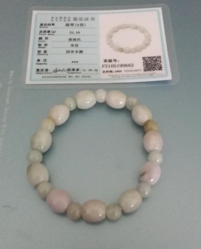 CERTIFIED CHINESE ICE GREEN JADE UNISEX BEADED BRACELET WITH CERTIFICATE Condition: Good - Refer Images 0 FC 163101+26