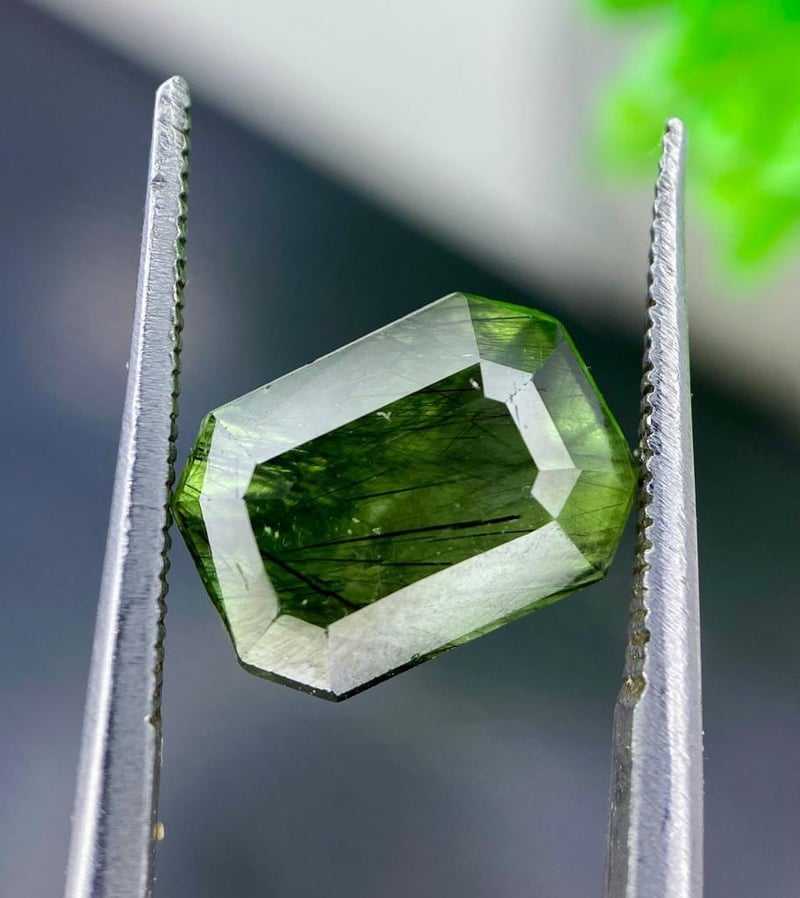 3.40 CARATS NATURAL RARE LUDWIGITE PERIDOT 3.40 Carats Natural Rare Ludwigite PeridotStone = Natural PeridotWeight = 3.40 CaratsColour = Green / BlackCut = Fancy Inclusion = LudwigiteNote = Gem Cil, Certified, Precise Custom Cut (Not Commercial) Condition: Good - Refer Images 0488465+32