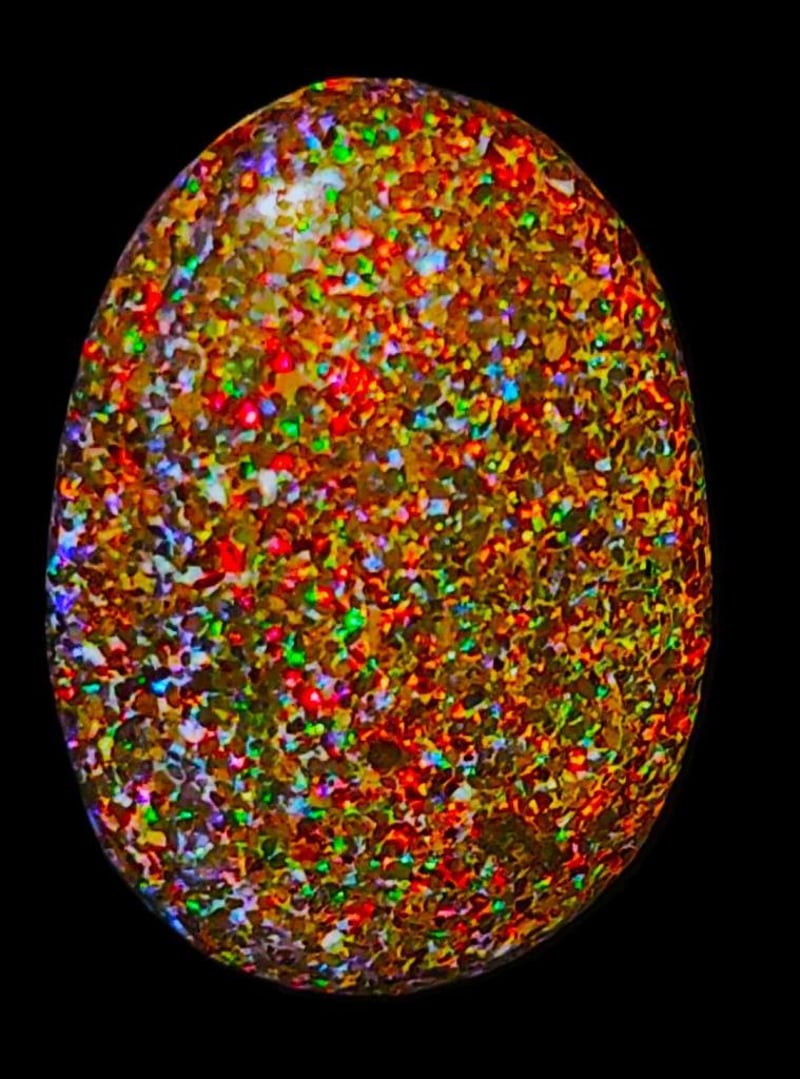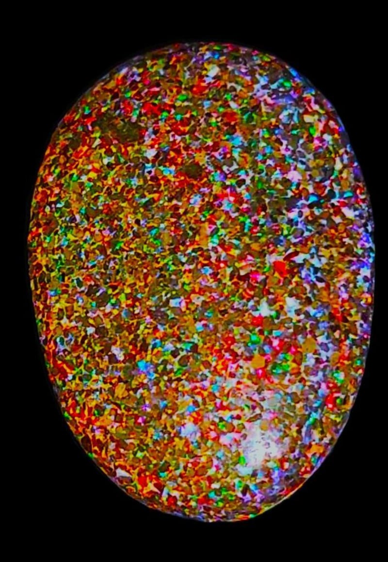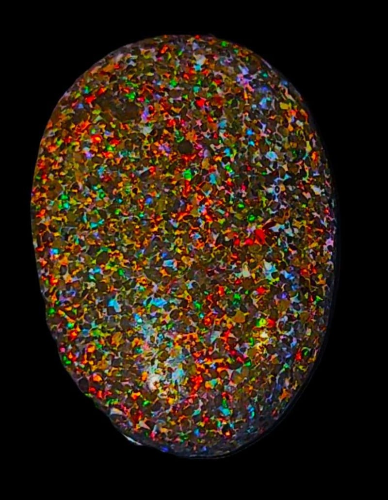 15 CARATS ANDAMOOKA MATRIX OPAL. Dimensions: 27X19x5mms Dense Tight Colour, With Sparkling Reds And Greens And Blues. Medium Domed Cabochon. Condition: Good - Refer Images 0+9